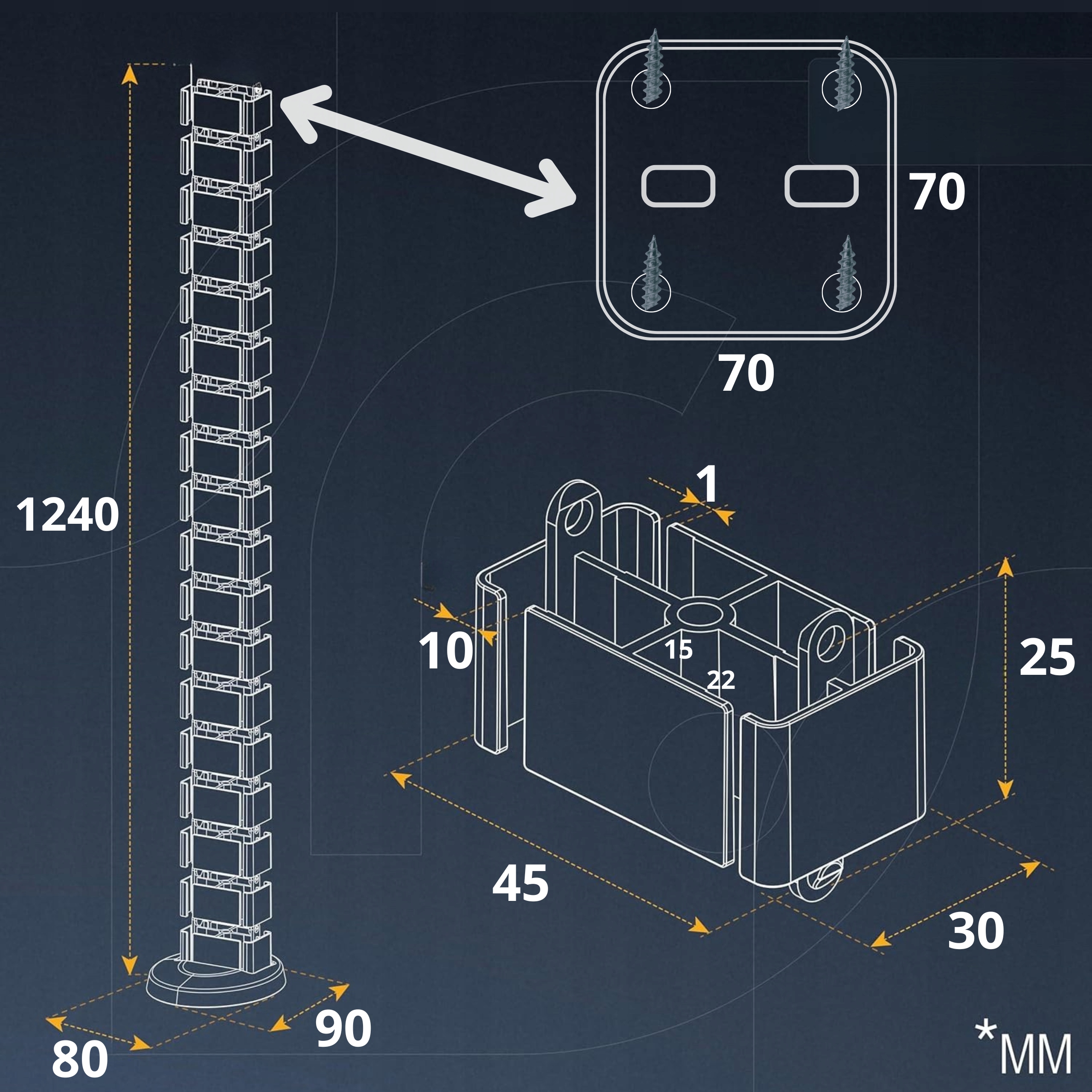 Сегменти можна від'єднати або додати (якщо у вас більше кришок), щоб збільшити довжину залежно від кількості кабелів і потреб.