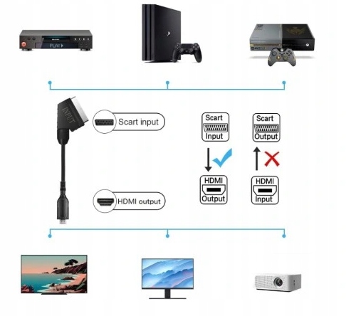 ✅ перетворення на Scart в HDMI: перетворює аналоговий відеомет Scart в цифровий сигнал HDMI, що дозволяє підключити старі пристрої до сучасних екранів.