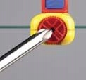 Внутрішній ніж, що обертається, автоматично перемикається з різання по окружності на поздовжнє. Таким чином, довші ділянки кабелю можна очистити від ізоляції за одну операцію. Гвинт з рифленою головкою на кінці ручки дозволяє швидко встановити глибину різання. Поставляється з 1 запасним лезом у ручці.