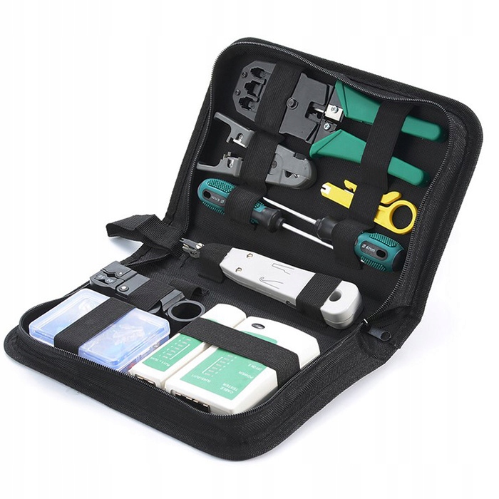 Зручний набір, який дозволяє тестувати старі або створювати нові локальні комп’ютерні мережі LAN. Набір оснащений усіма необхідними інструментами, необхідними для роботи в Інтернеті вдома та в офісі. Набір також незамінний при ремонті пошкоджених кабелів.