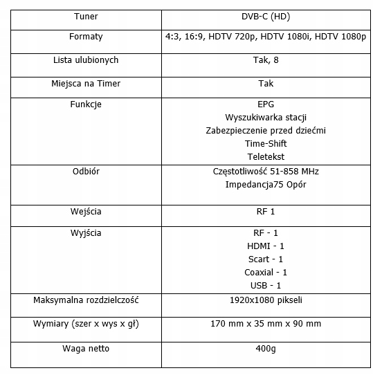 Оплачивая «КАБЕЛЬНЫЙ ТЮНЕР OPTICUM C200 DVB-C MPEG-4», вы можете быть уверены, что данное изделие из каталога «Тюнеры» будет доставлено из Польши и проверено на целостность. В цене товара, указанной на сайте, учтена доставка из Польши. Внимание!!! Товары для Евросоюза, согласно законодательству стран Евросоюза, могут отличаться упаковкой или наполнением.