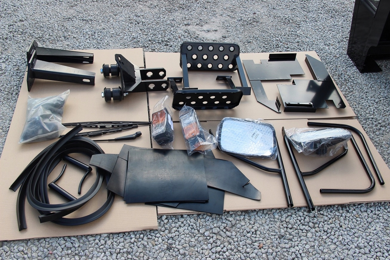 Кабіна має відкидний дах і відкидне заднє скло. Вікна, які використовуються в кабіні, виготовлені з безпечного загартованого скла і вбудовані в спеціальну гумову прокладку. Спосіб кріплення скла в рамі кабіни і в дверях кабіни дозволяє легко і швидко замінити скло в разі пошкодження.