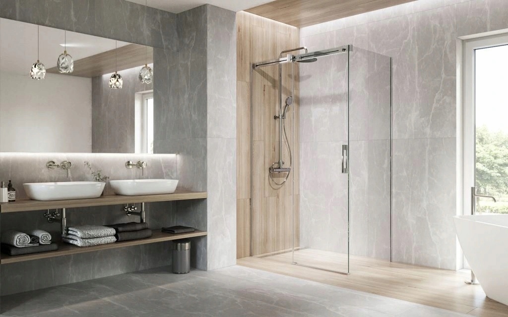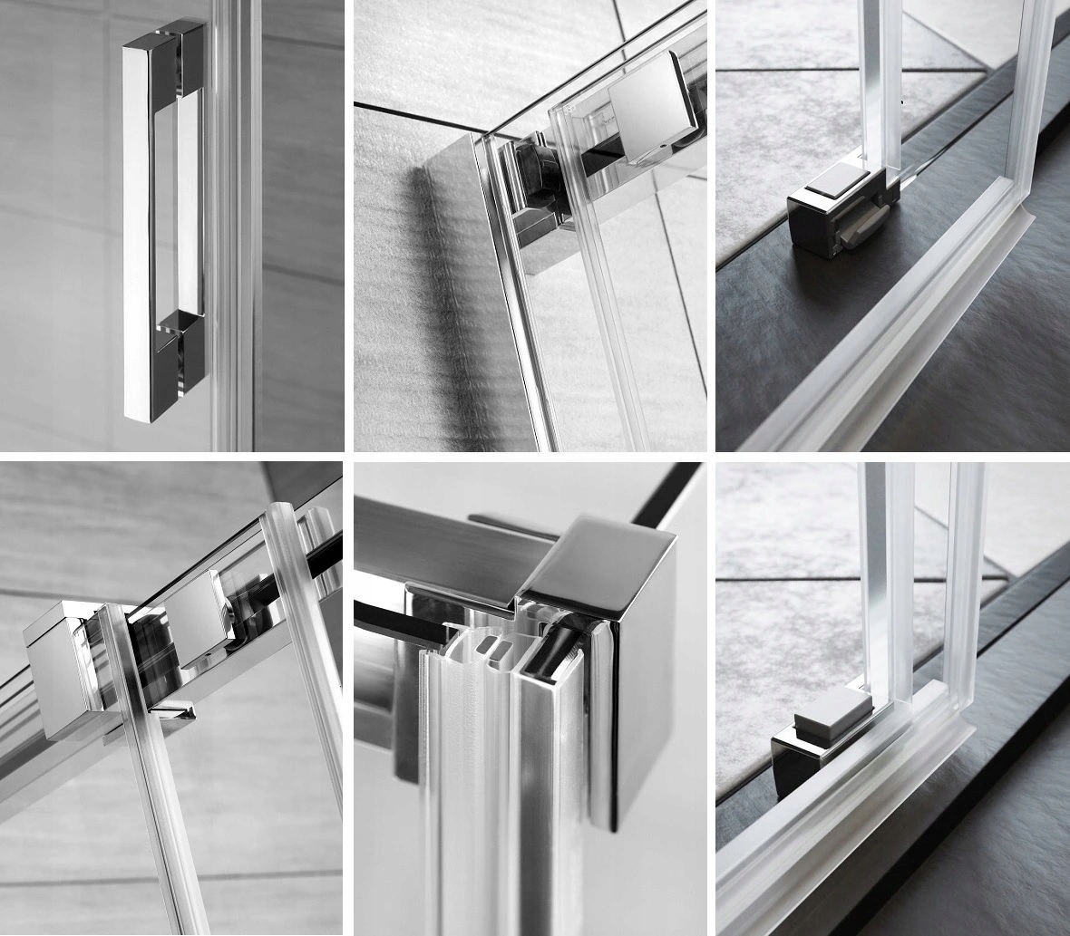 Душові кабіни та двері серії Espera мають усі необхідні компоненти для встановлення як з порогом, так і без нього.