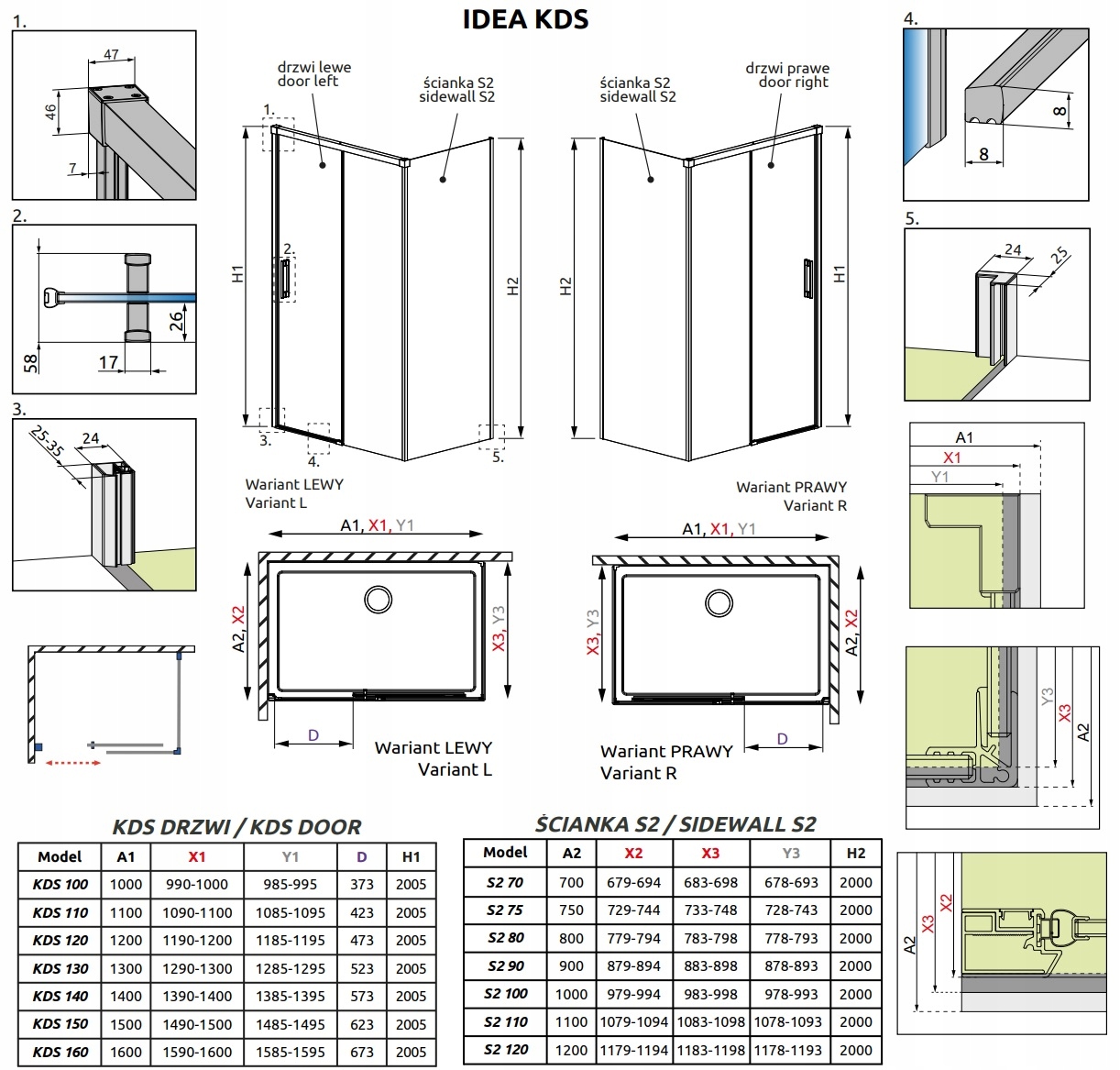 Усі товари серії Idea містять усі необхідні деталі, необхідні для монтаж як з планкою, так і з планкою на поріг і без неї.