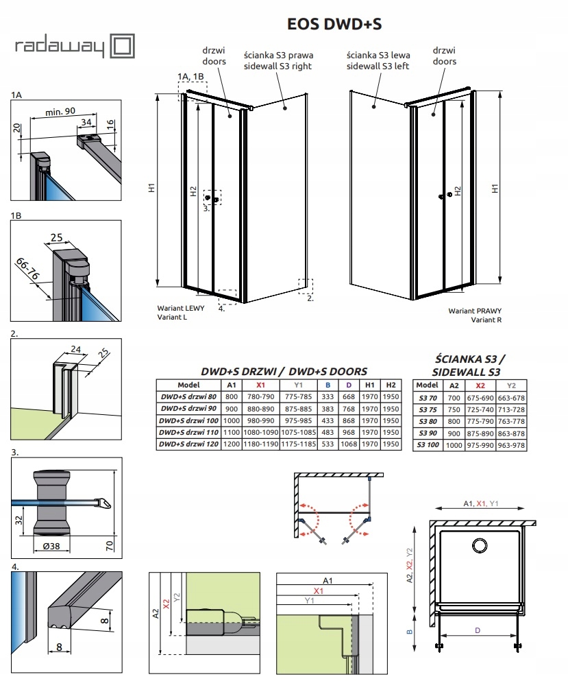 Кабіна ЛІВА Eos DWD+S 120x90x197 RADAWAY