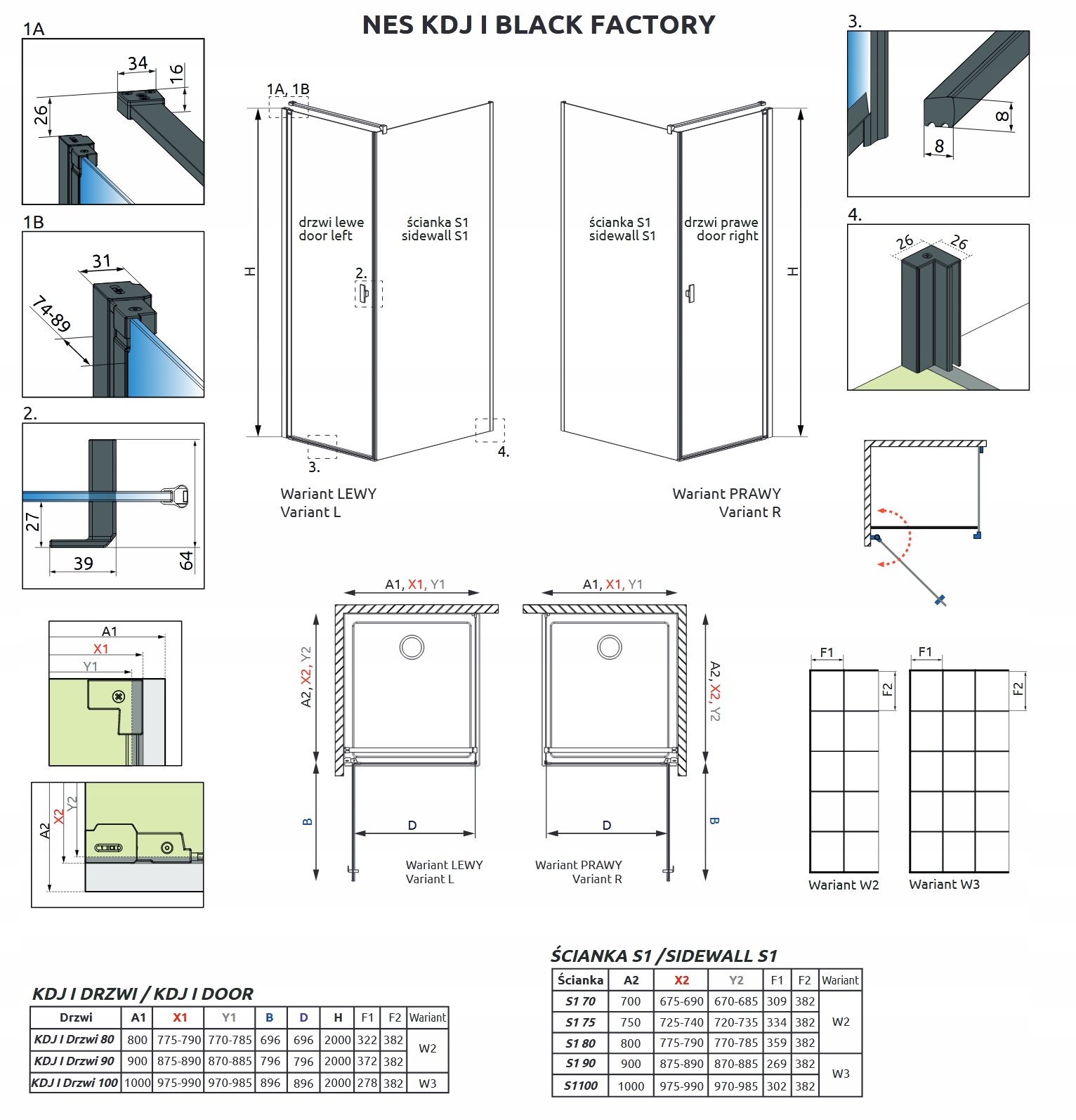 Кабіни Nes Black KDJ I Factory можна монтувати як на душові піддони, так і безпосередньо на підлогу. Двері та кабіни серії Nes Black мають усі необхідні компоненти для монтажу як з порогом, так і без нього.
