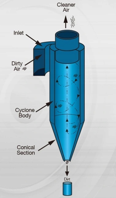 - Високоефективний циклонний пилозбірник із двоступеневою системою очищення від пилу