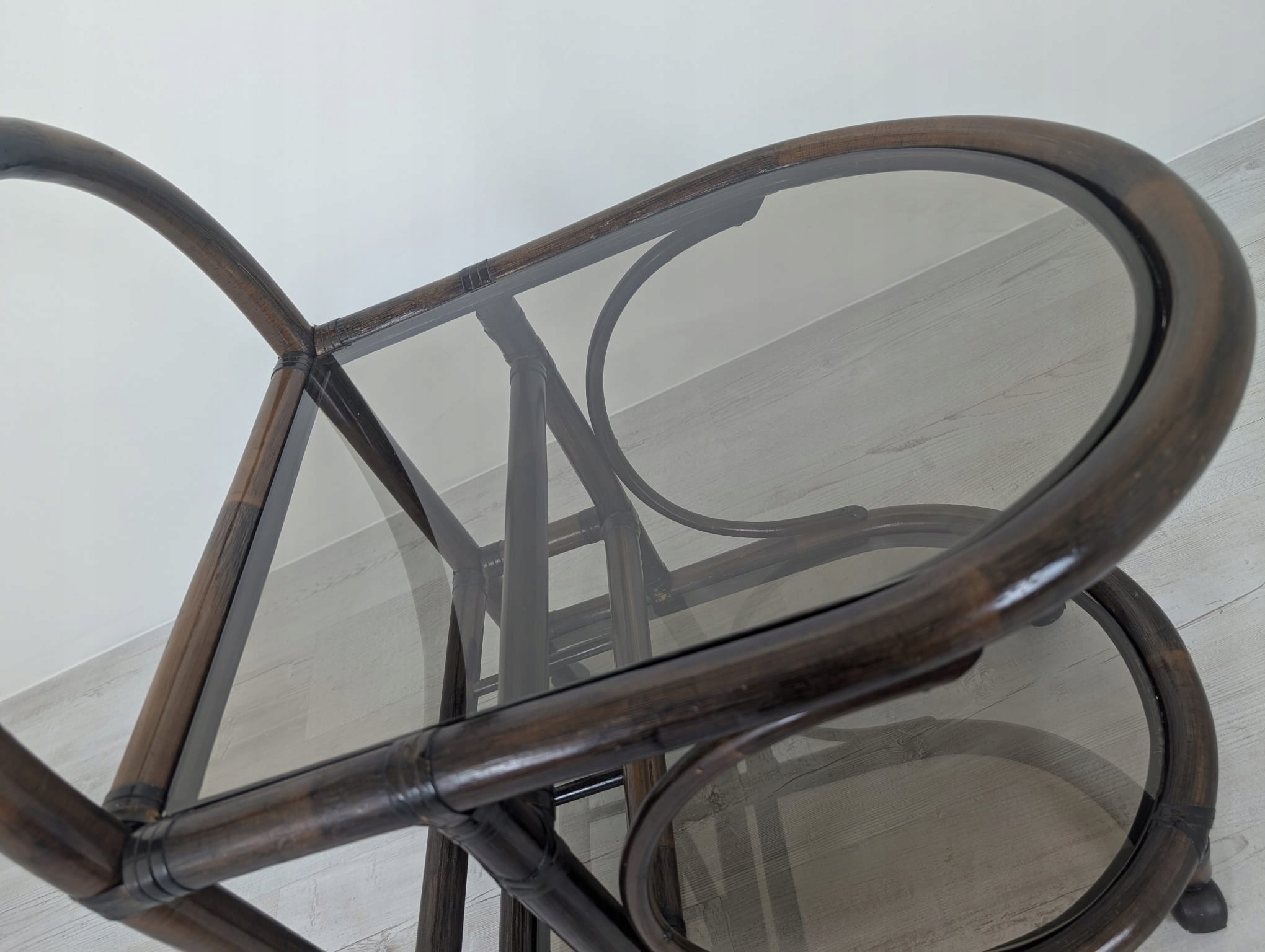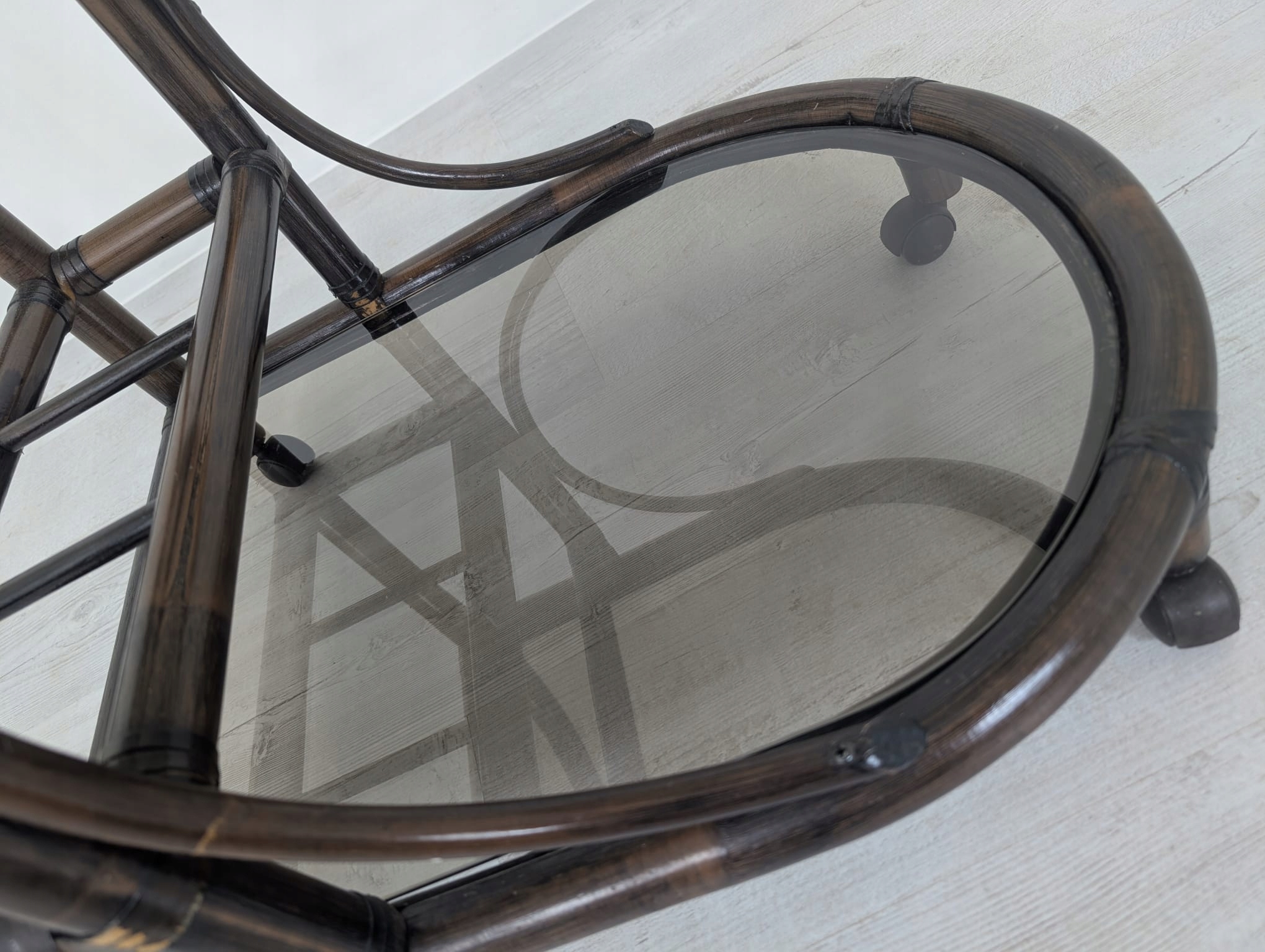 бар, виготовлений з темного ротанга, покритого двома копченими рейками.