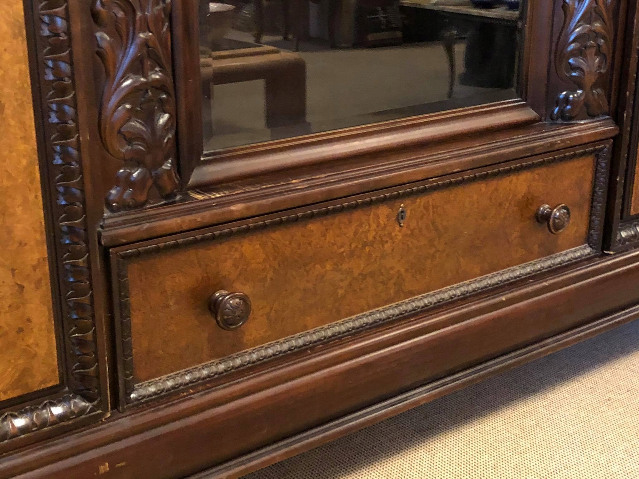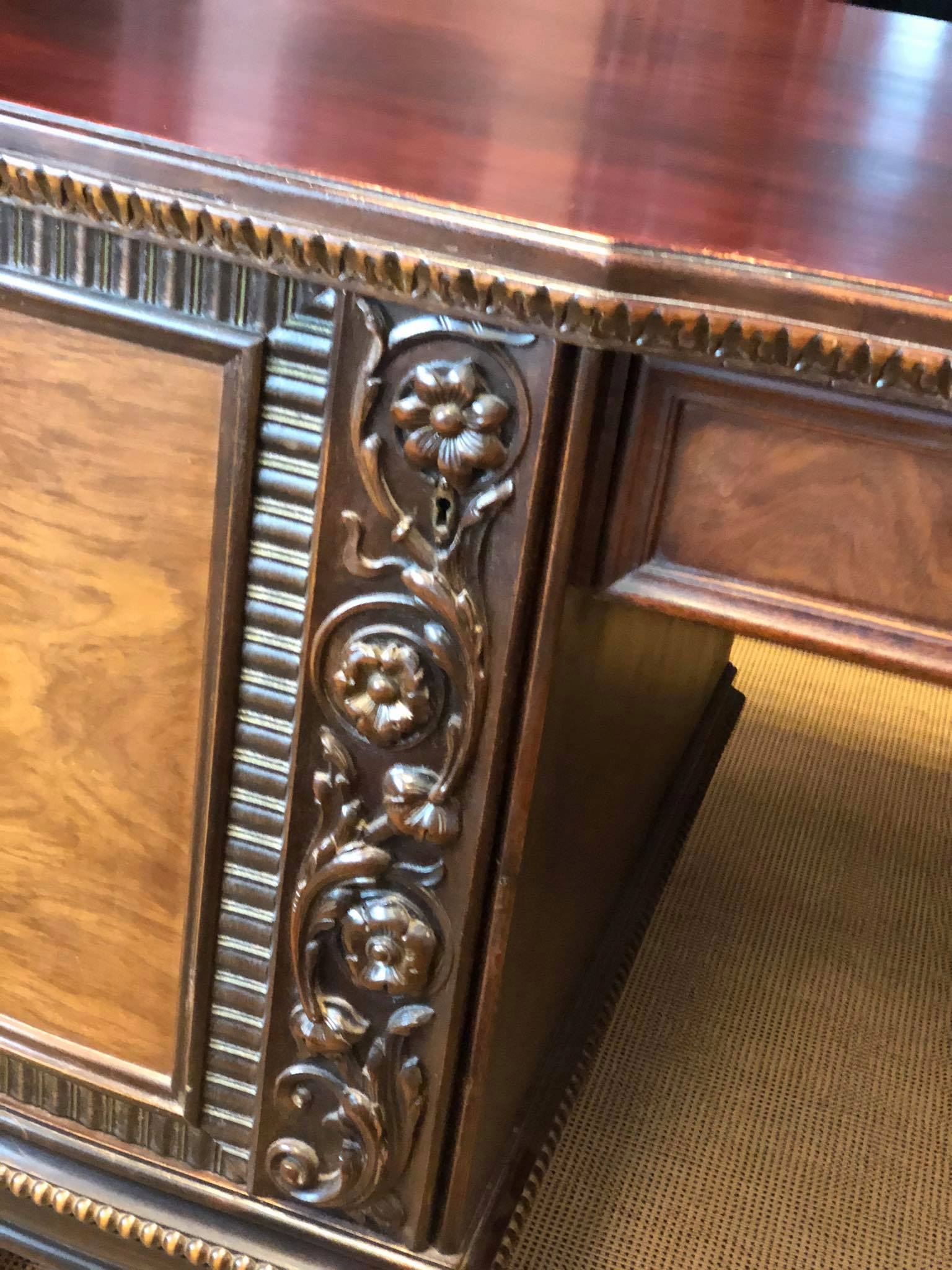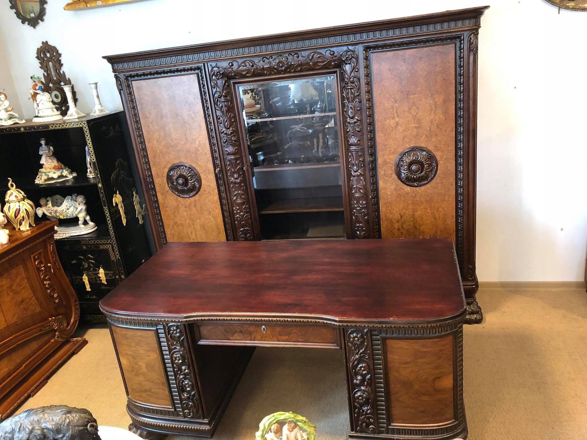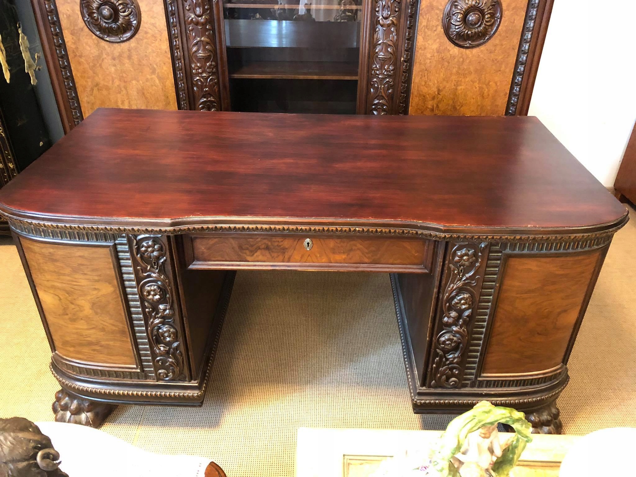 Офіс є в дуже хорошому візуальному та технічному стані. Всі замки справні, ключі в комплекті. На поверхні є незначні сліди використання - це дрібні подряпини, які не заважають використанню, а лише підкреслюють старовинний характер меблів. Для набору потрібна лише косметика.