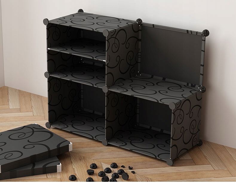 Модульна стійка для зберігання виготовлена з поліпропіленових пластикових панелей із металевою рамою та з’єднувачами з ABS.