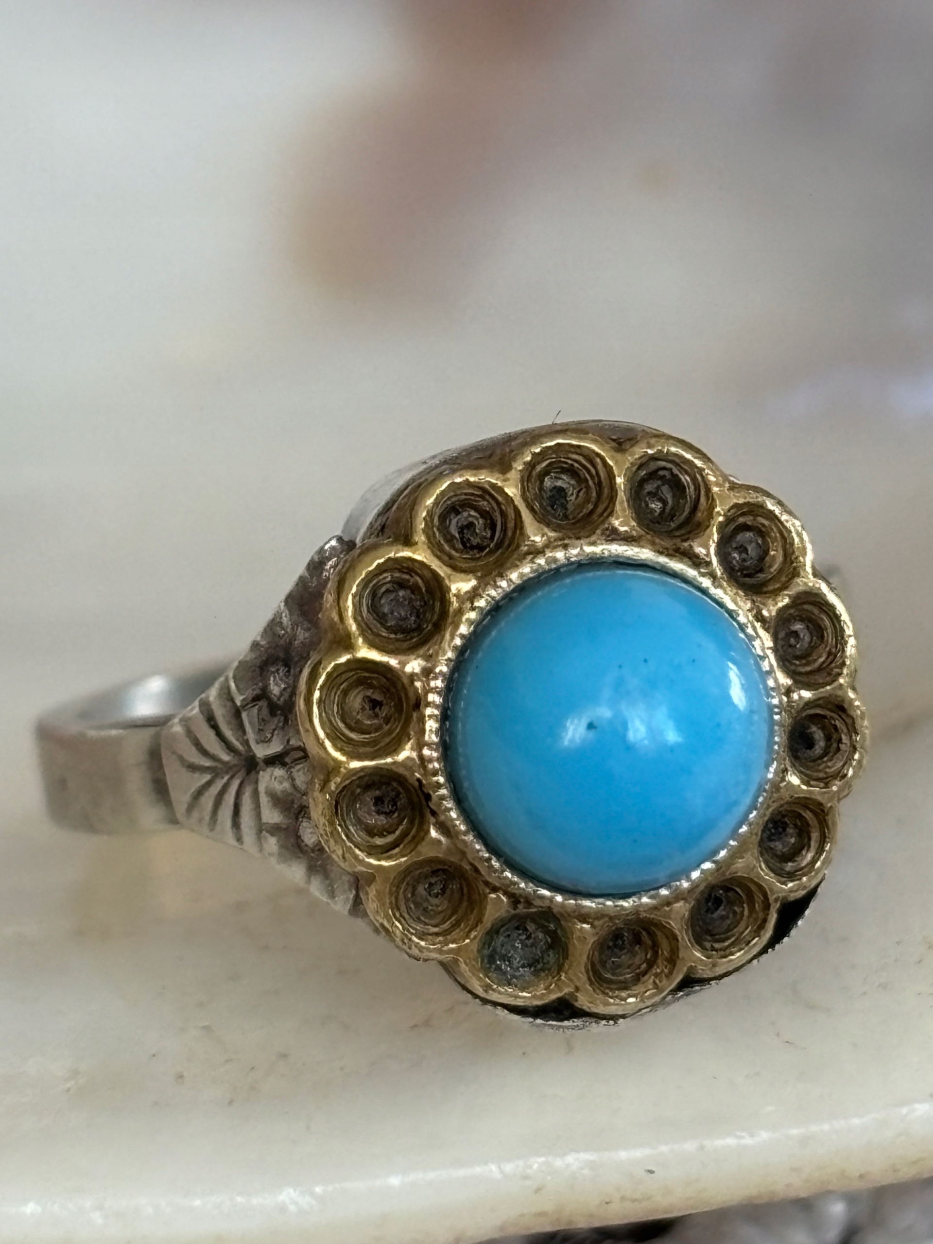 Каблучка Росія 875 старого срібла з бірюзовим куполом