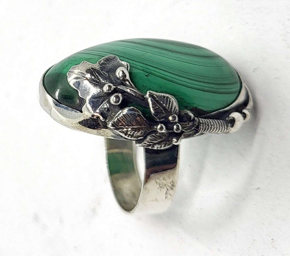 Каблучка з малахітом - вінтажна - ручна робота