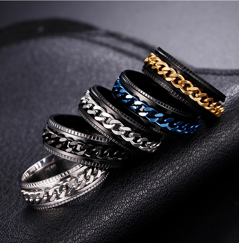 Каблучка з печаткою, обручка, нержавіюча сталь, ланцюжок