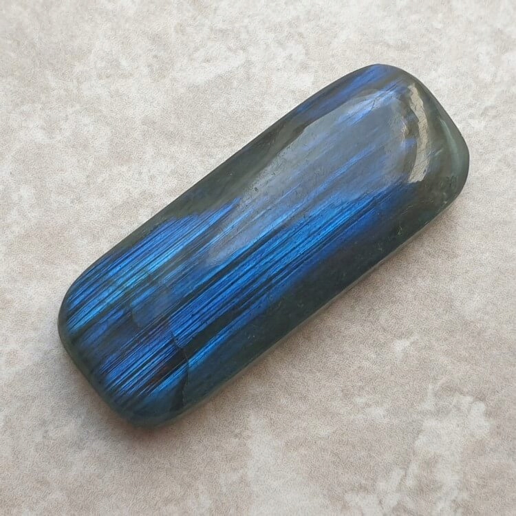 Лабрадорит b> характеризується тим, що його світіння виходить залежно від кута падіння світла. На фотографіях представлено конкретний пропонований камінь, при покупці ви отримаєте саме той кабошон.