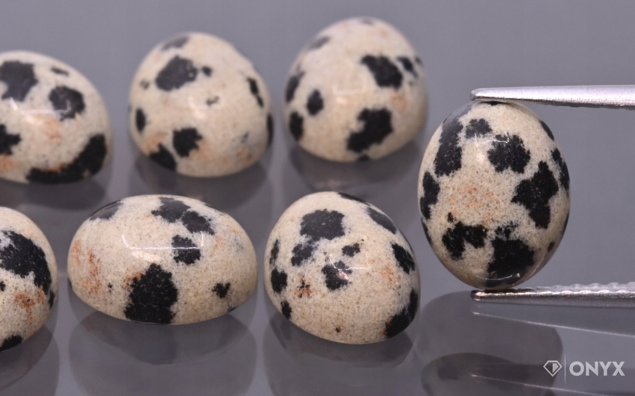 Кабошон з далматинської яшми овальний 10х8 мм