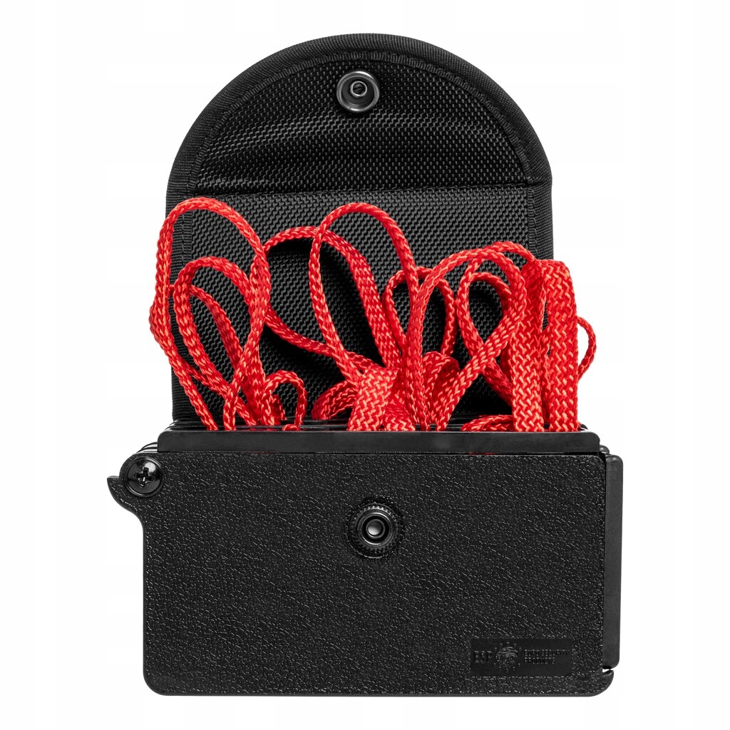 Кобура для 9 одноразових текстильних наручників типу HT-01, виготовлена з легкого та міцного поліаміду. Відкривши люк, ви зможете швидко і легко зняти наручники, потягнувши за їх виступаючу частину.