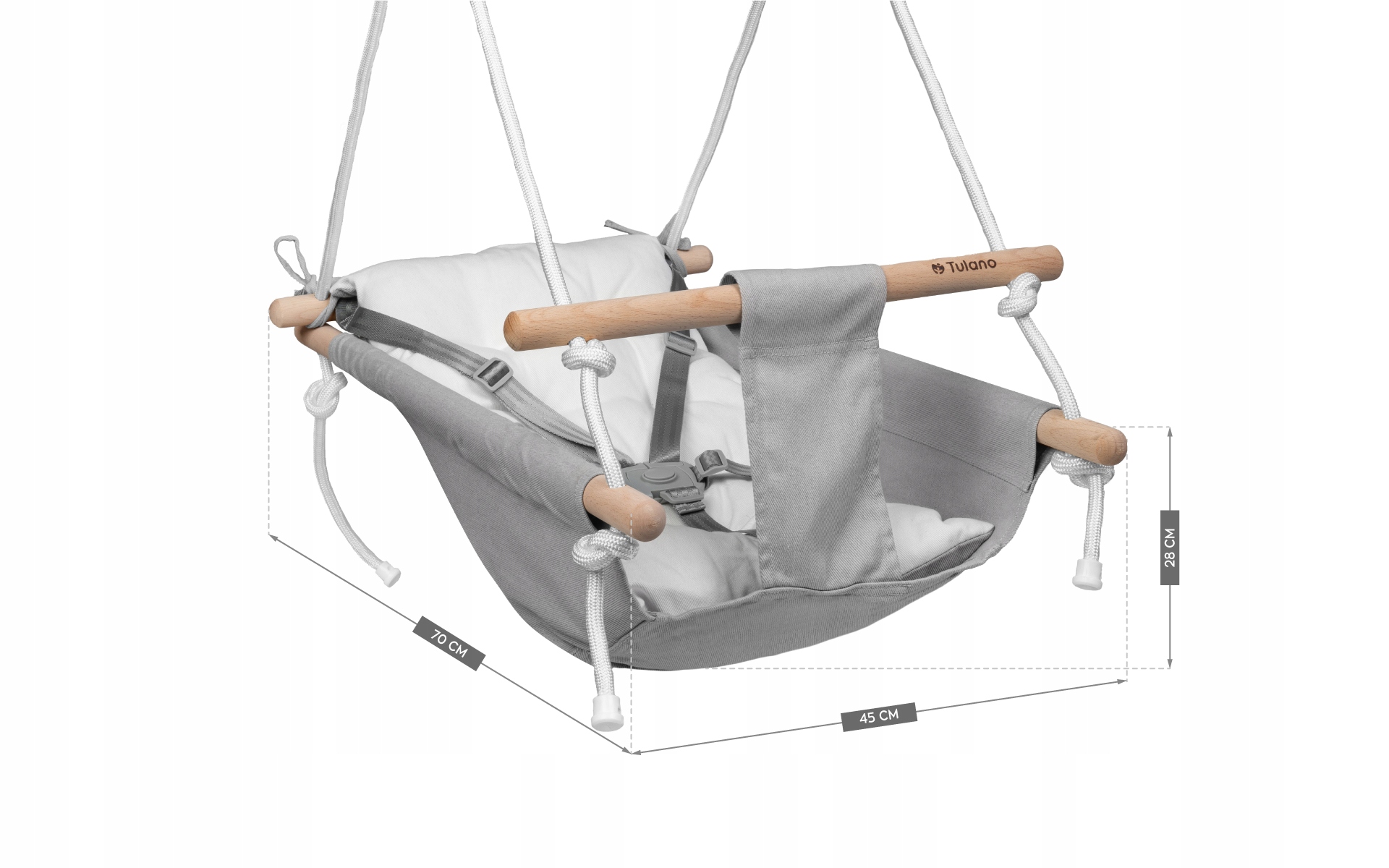 М'яка біло-сіра подушка, яку можна використовувати з двох сторін, забезпечить комфорт вашій дитині. Завдяки цьому ви можете швидко змінювати дизайн гойдалок, пристосовуючи їх до будь-якого розташування.