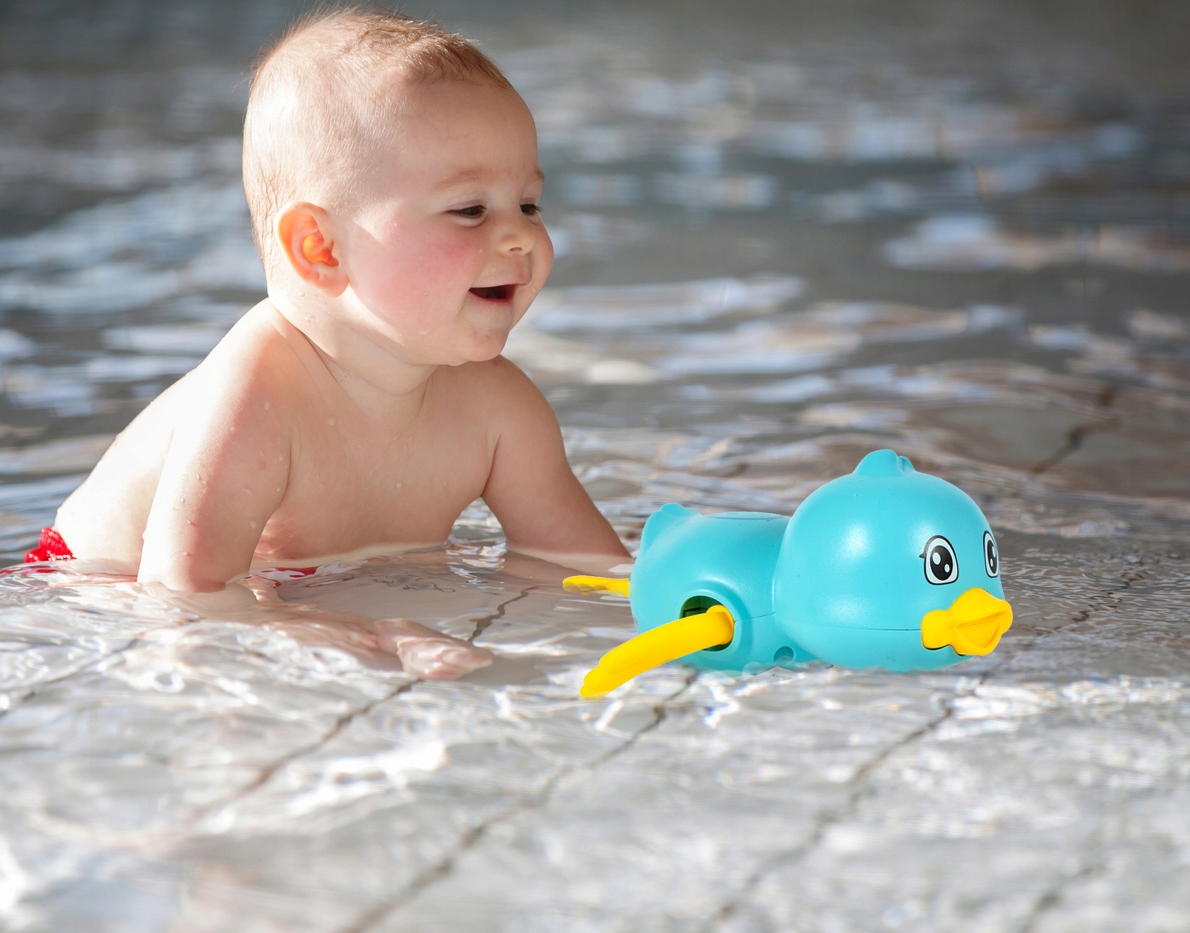 Чарівне каченя чудово плаватиме у ванні. Змотавши її і кинувши у воду, вона починає плавати і рухається як справжній плавець!