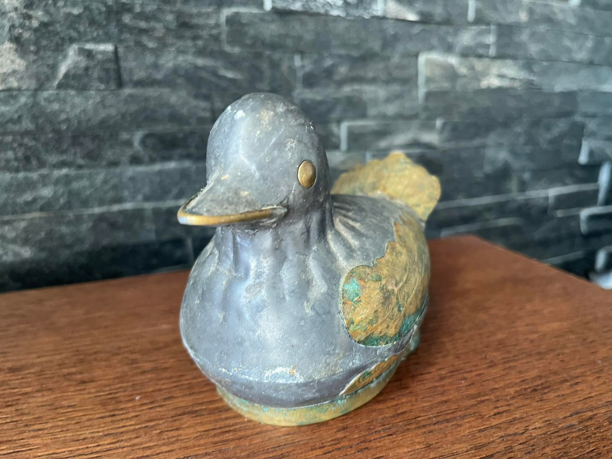 Kaczka figurka metal mosiądz szkatułka puzderko