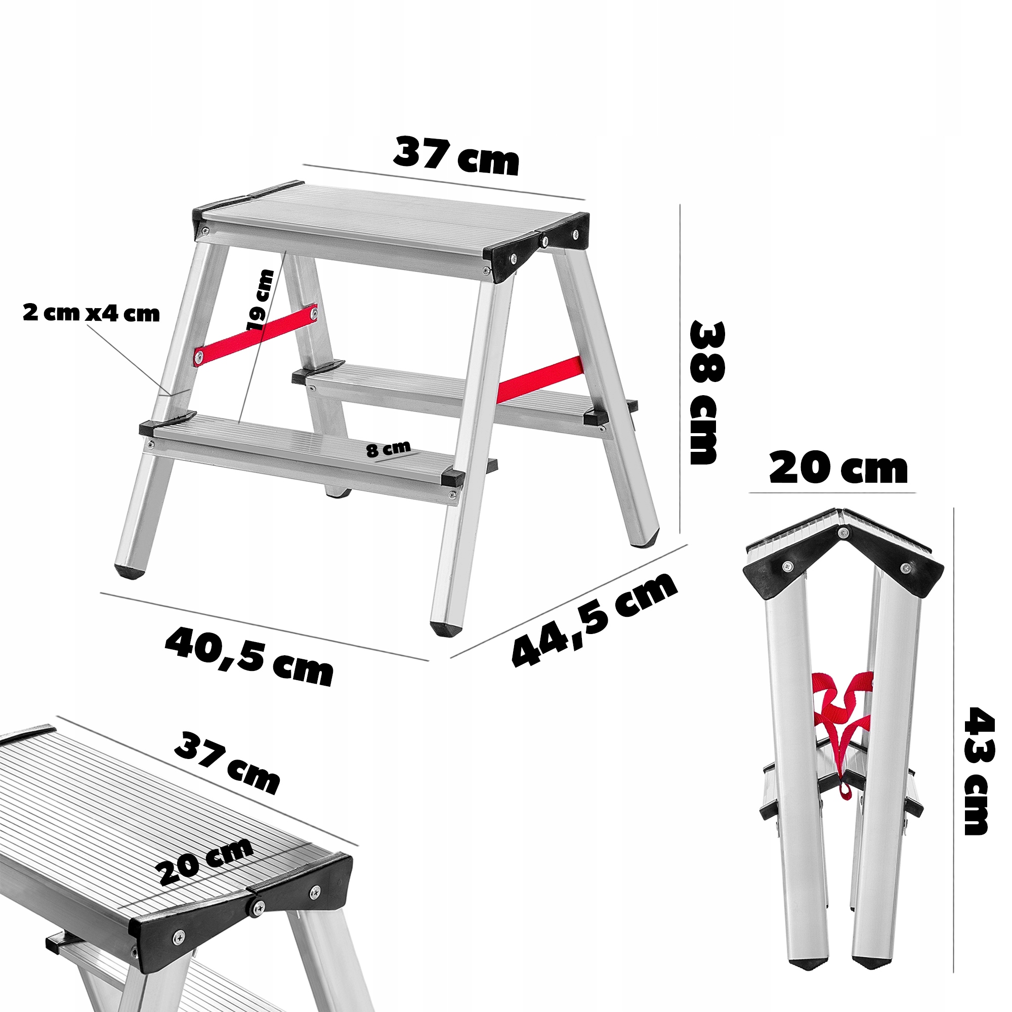 KADAX АЛЮМІНІЄВІ СХОДИ 2 КРОКІ ДОМАШНІ ДВОСТОРОННІ СХОДИ