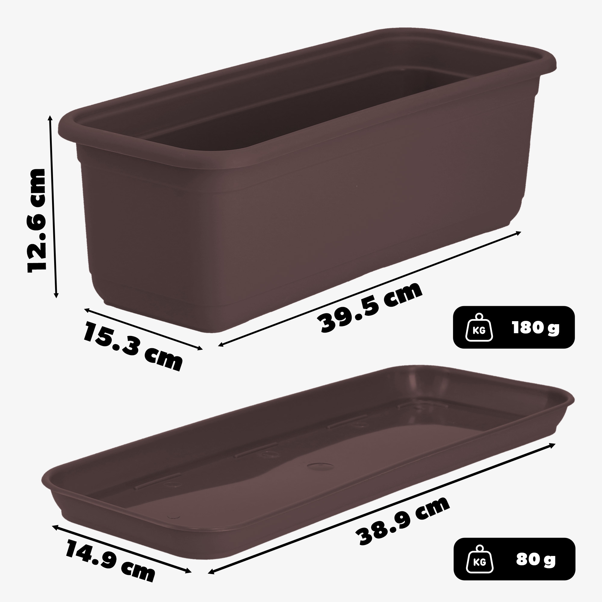 - 1x балконний горщик для квітів - 39,5 x 15,3 x 12,6 см