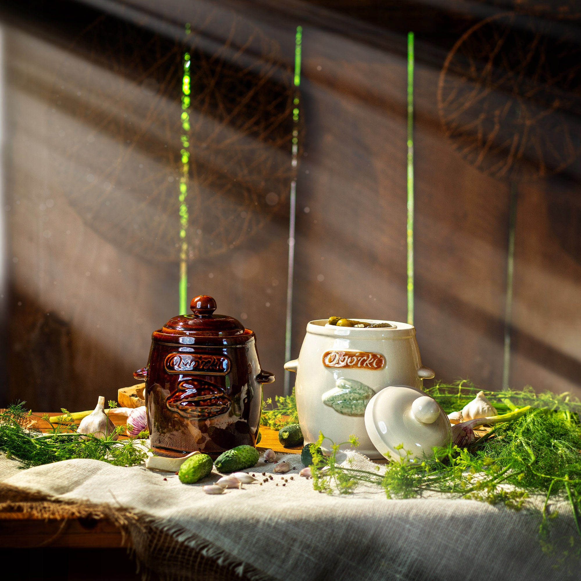✅ ЕСТЕТИКА - Бочка Kadax характеризується ефектним, трохи сільським виглядом. Поверхня використовуваної кераміки має класичний коричневий колір. Передня частина стовбура прикрашена цікавимтисненням з написом «Огірки».