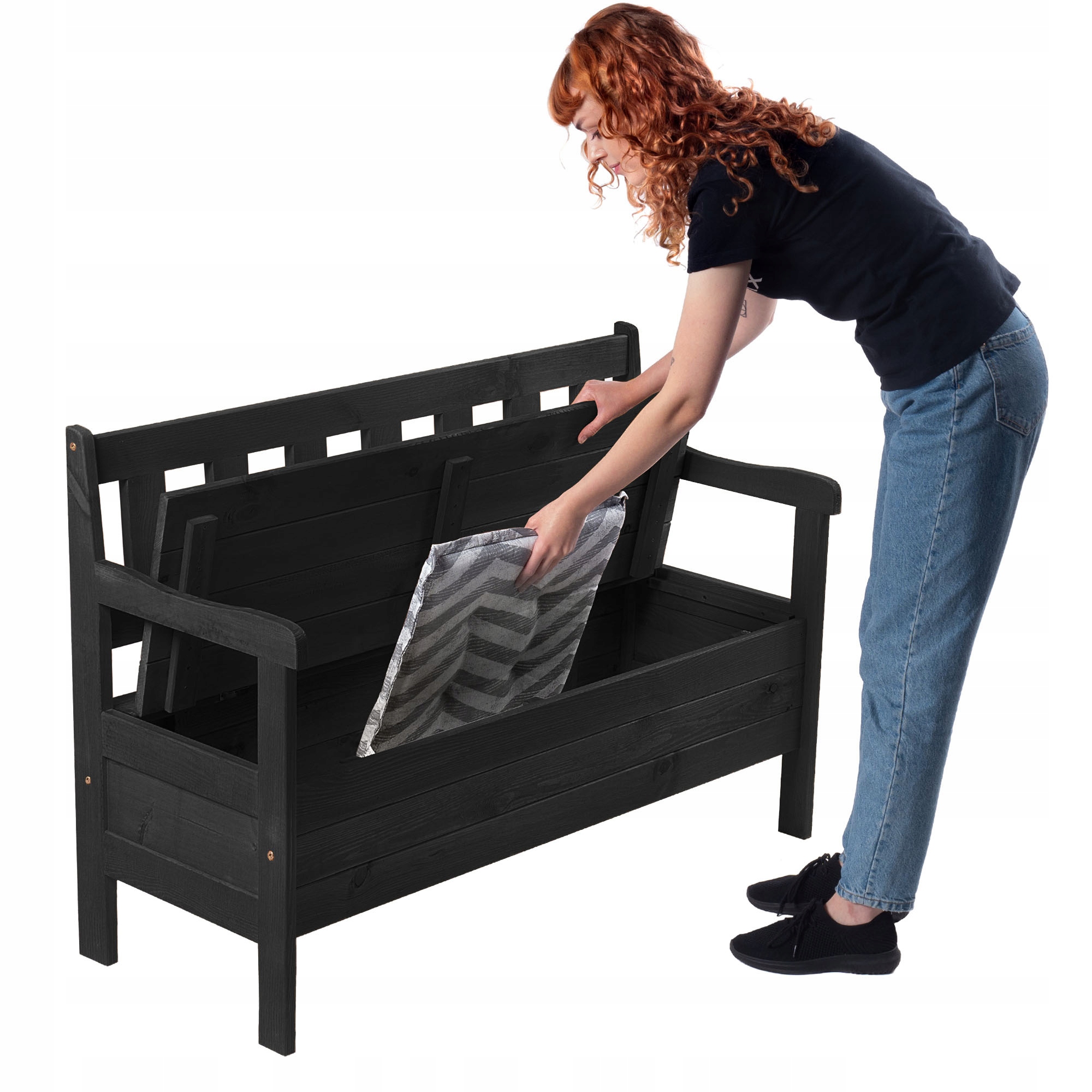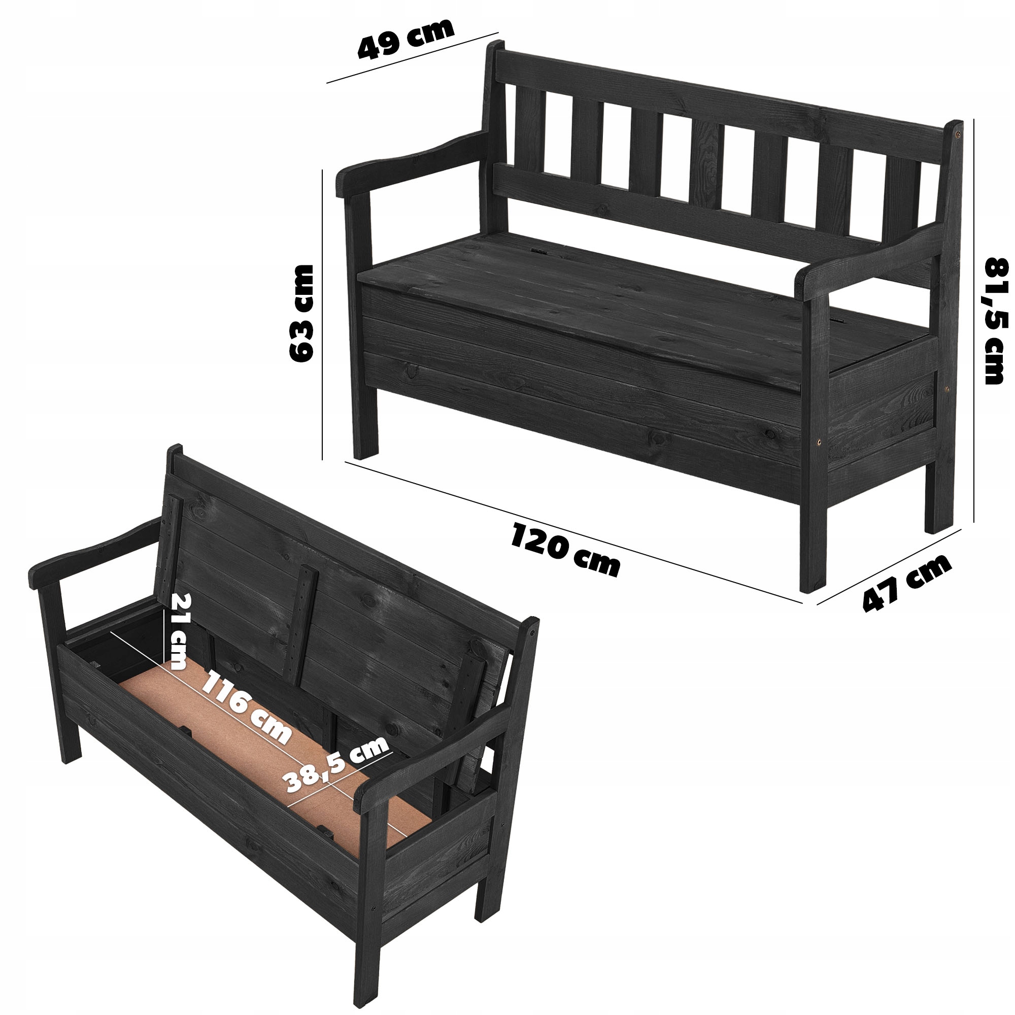 Виріб виготовлено з натуральної сосни, покритої антрацитового кольору, який ідеально підійде практично до будь-якого типу декору. Прямокутна форма лавки та відсутність зайвих декорацій означає, що предмет меблів ніколи не вийде з моди!