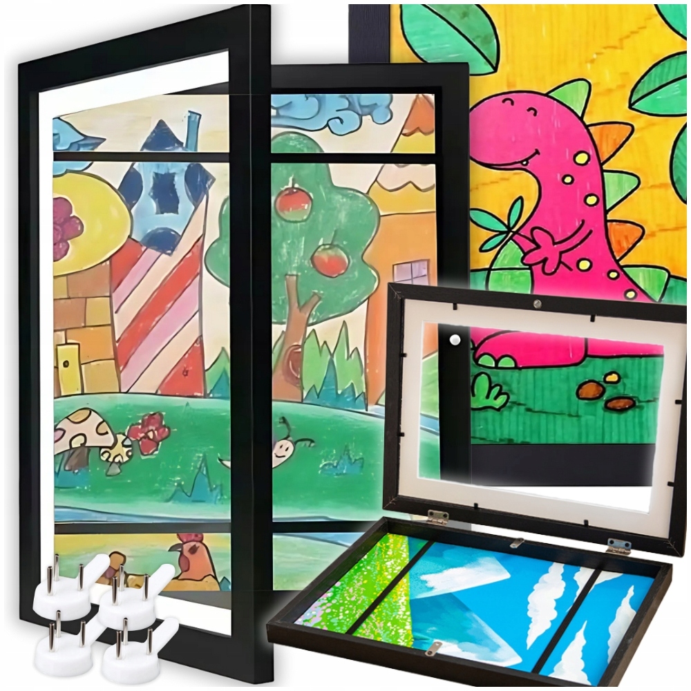 Рамка дозволяє зберігати до 150 малюнків, фотографій або фотографій у форматі A4. Це чудове рішення для батьків, які хочуть зберегти дитячу роботу і в той же час представити їх естетичним способом .