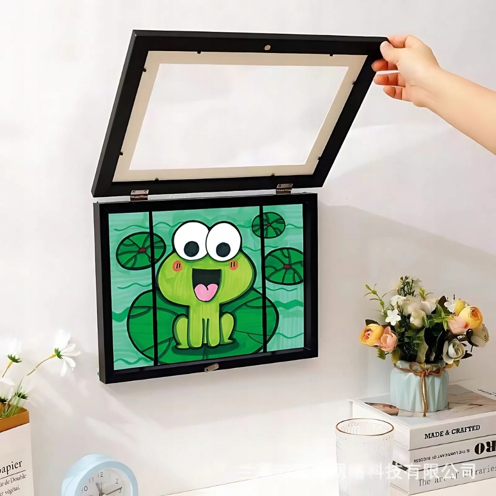 Завдяки магнітному закриттю малюнки залишаються на місці, а відкриття та закриття рами швидко та комфортно .