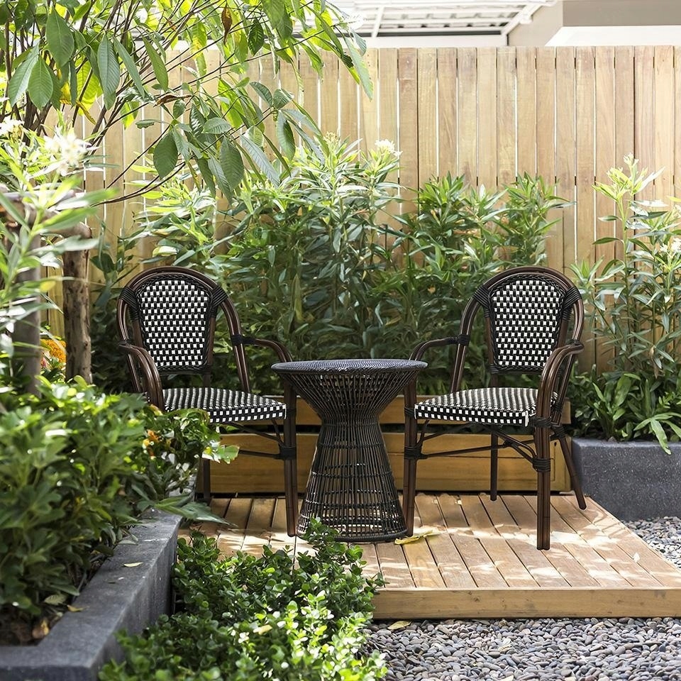 Сидіння та спинка виготовлені з синтетичного плетеного стійкого до УФ -випромінювання.