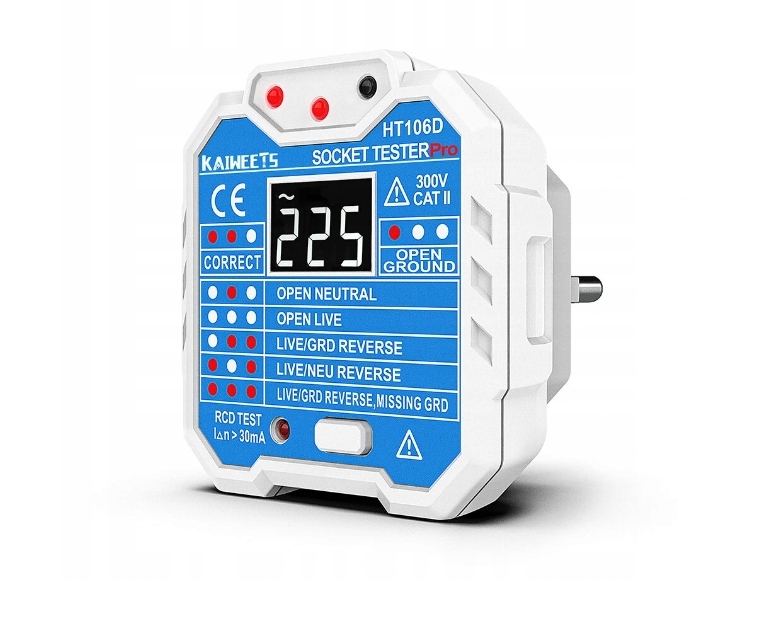 Kaiweets HT106D RCD PLAG -in РК -штекер Тестер розетки