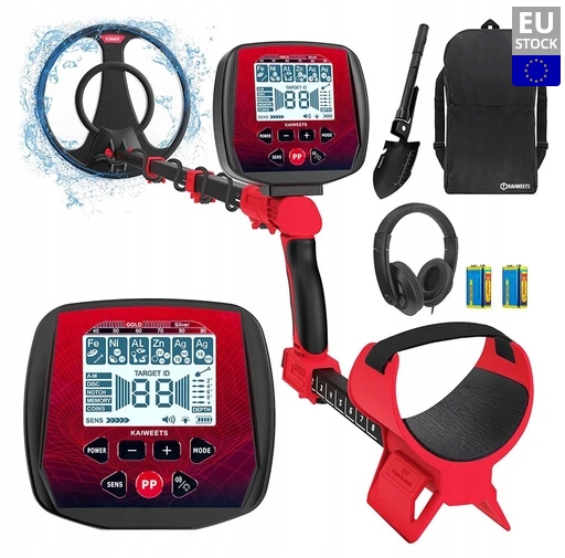 Металошукач KAIWEETS KGM01, детектори з регульованим РК-монітором і регульованим стрижнем, з лопатою, навушниками та рюкзаком, 6 режимів роботи для точного визначення та всіх металів, дисків, виїмок, пам’яті та монет.