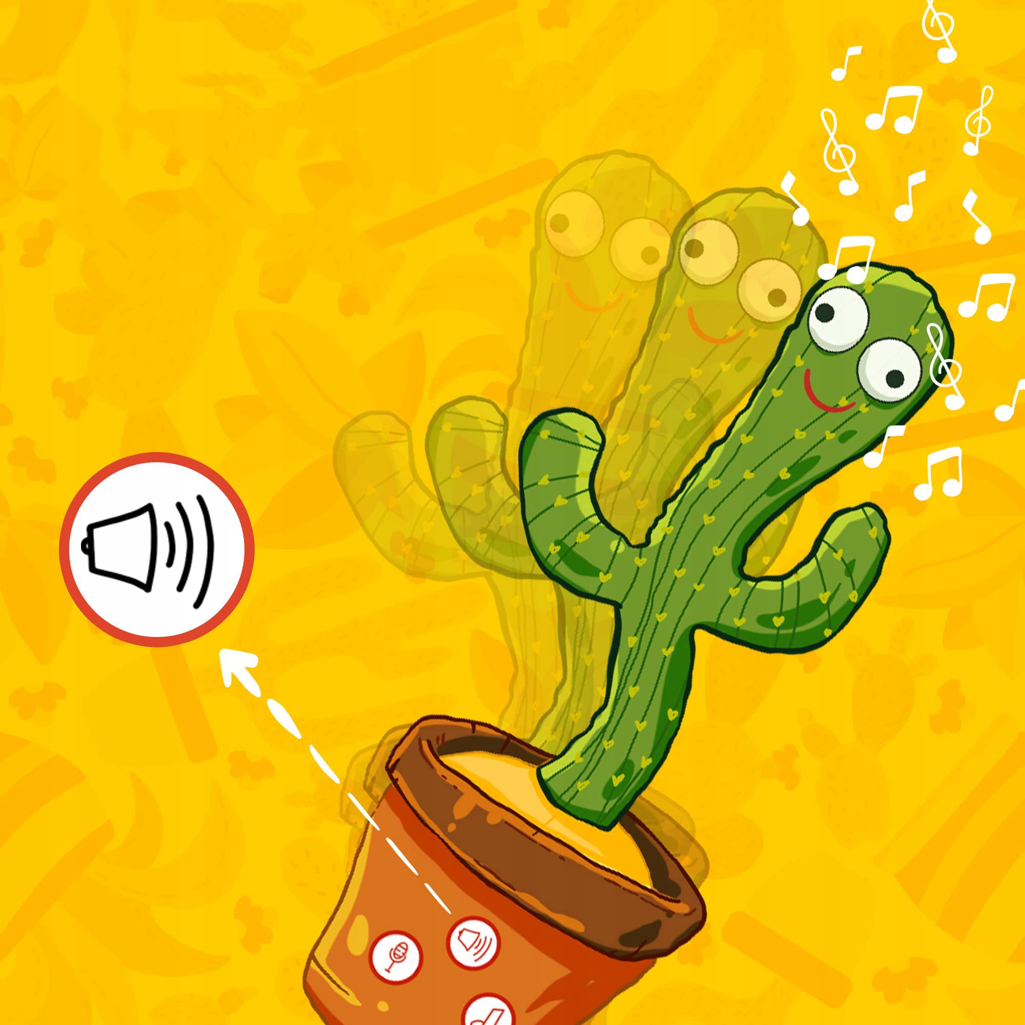 Кактус, що говорить, має 120 англійських дитячих пісень. Коли танцюючий кактус увімкнено, він танцює з миготливими вогнями, розсіяними по його тілу , хиткий, дуже смішний. Також весела музика і танці можуть привернути увагу вашої дитини, нехай ваші діти веселяться!