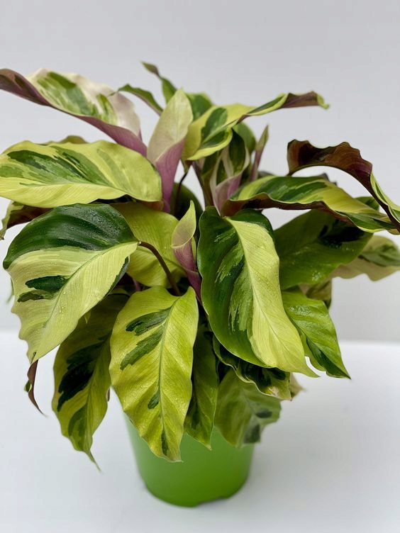 Калатея характеризується дуже декоративним листям, тому ми любимо прикрашати нею наш інтер’єр . Цей вид має щільну форму, листя кріпляться на довгих черешках. Листові пластинки мальовничо забарвлені. Верхня сторона вкрита білими і зеленими плямами неправильної форми, ніби вони намальовані вручну. Нижня сторона листя контрастно-фіолетова. Вся рослина виглядає надзвичайно елегантно і легко.