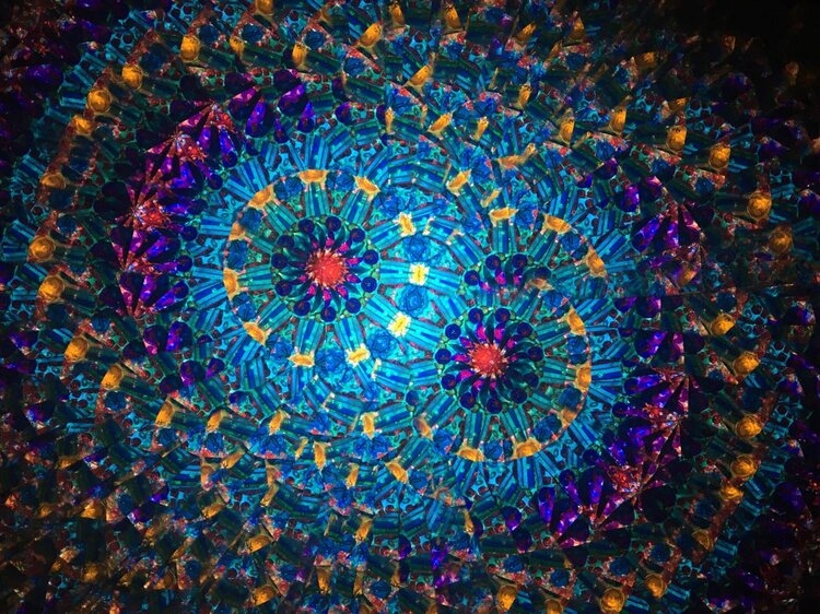 Латунний калейдоскоп XXL із двома дисками, у які вставлено різні фігури різних кольорів. Вони розміщуються на кінці труби, що містить набори дзеркал, і, обертаючи диски, створюються нескінченні нові відбиваючі зображення. Диски можна обертати, щоб знайти певну форму та колір. У набір входять два додаткових диска, завдяки яким можна створити ще більше унікальних візерунків. Він може бути джерелом натхнення для дизайнерів і художників і служити іграшкою, яка стимулює уяву будь-якого віку.