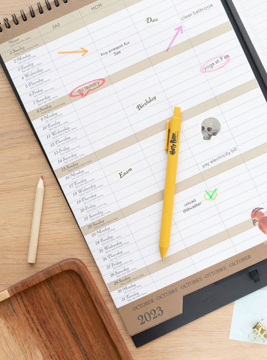 Настінний календар/планувальник — чудовий варіант для кожної родини. Завдяки цьому ніхто не забуде про свої обов'язки. У планувальнику є місце для нотаток, розділене на колонки, тож кожен член сім’ї має місце для своїх нотаток. Окрім календаря, планувальник також має блокнот для списку покупок, липкі нотатки, аркуш кольорових наклейок із вашим улюбленим мотивом і пластикову ручку для нотаток.