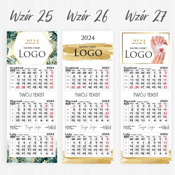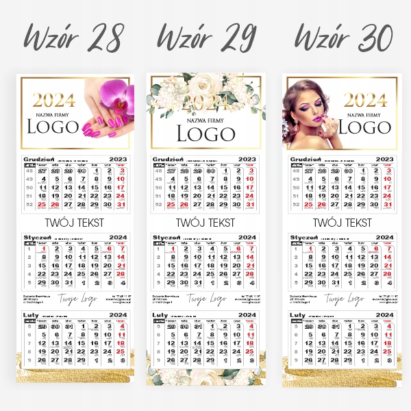 - Календарі: 2 кольори (чорний, червоний) 3 мови (PL, GB, D)