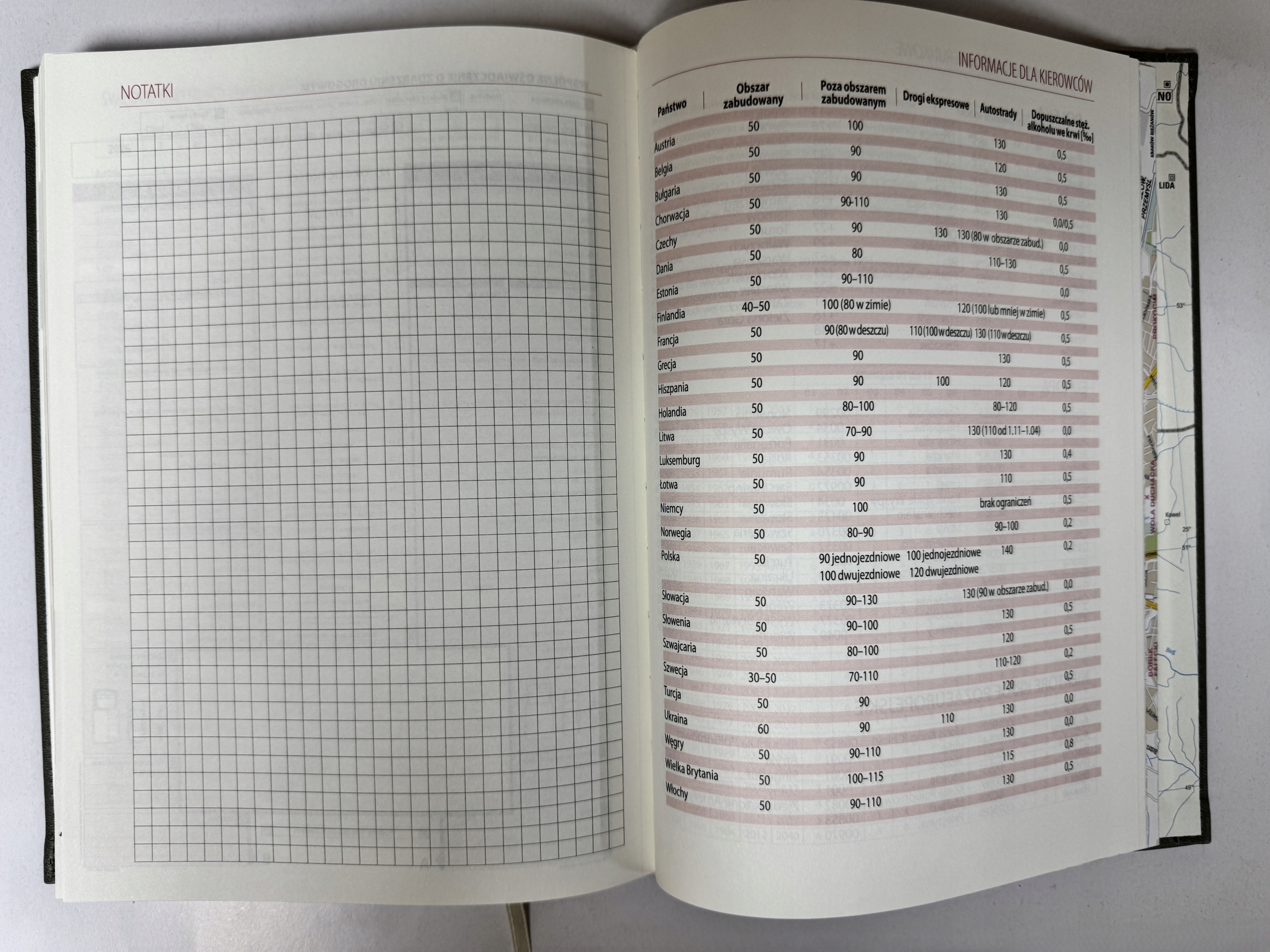 - Карти: карта Європи на передньому форзаці, карта Польщі на зворотному форзаці, додатково 8 сторінок із картами головних міст Польщі: Гданськ, Катовіце, Краків, Лодзь, Познань, Щецин, Варшава, Вроцлав
