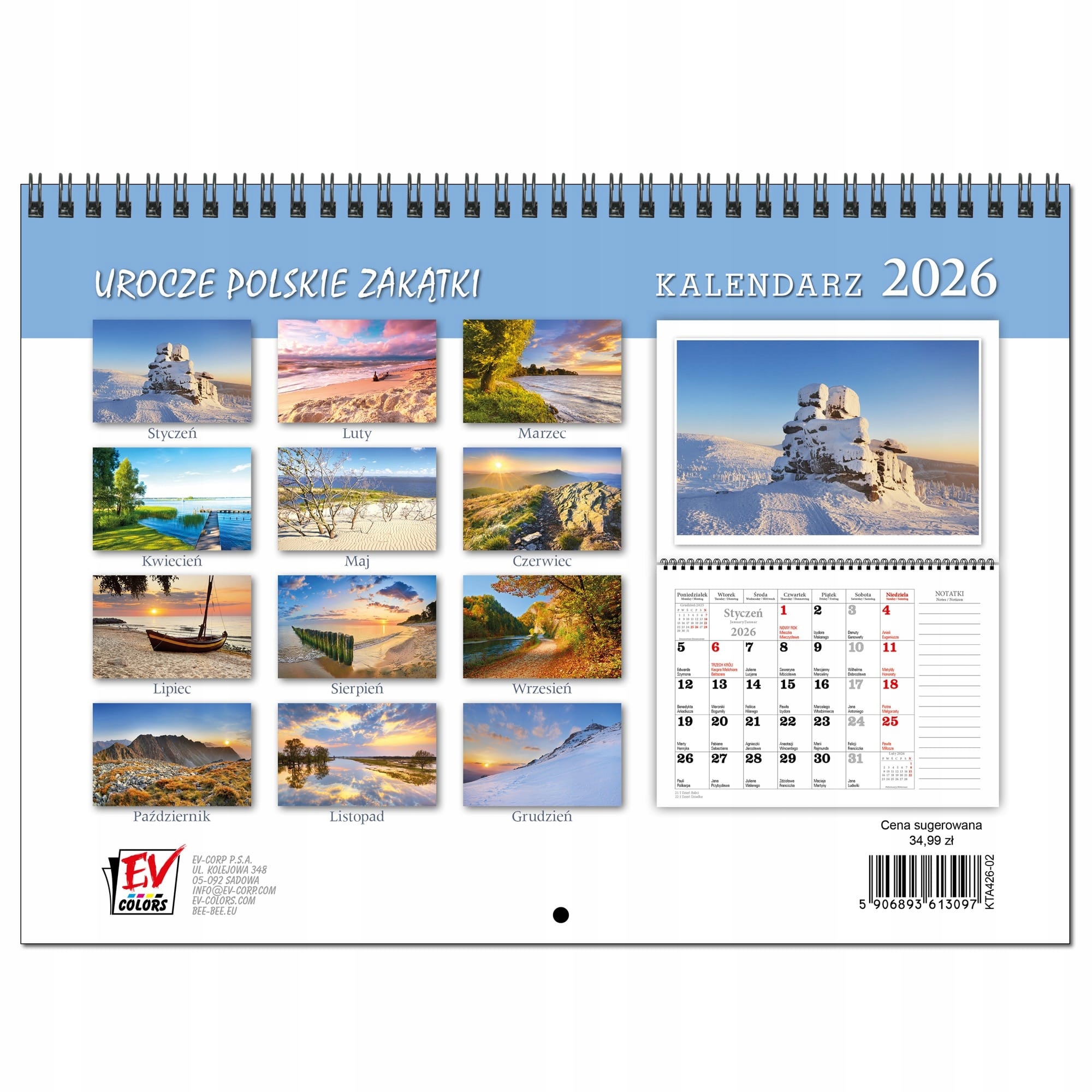 Календар 2026 настінний планувальник А3 13 дощок ЧАРІВНІ ПОЛЬСЬКІ КУТОЧКИ