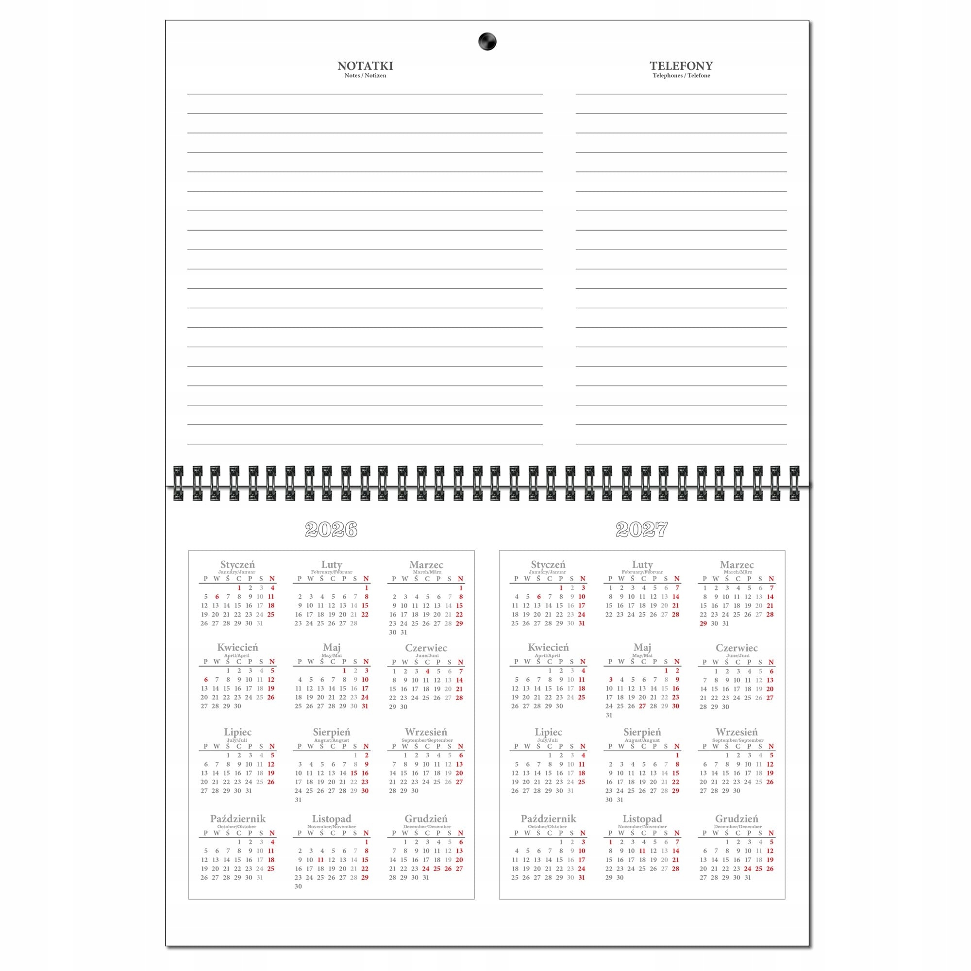 - щоденник, нотатки, номери телефонів, скорочені календарі на поточний і наступний рік