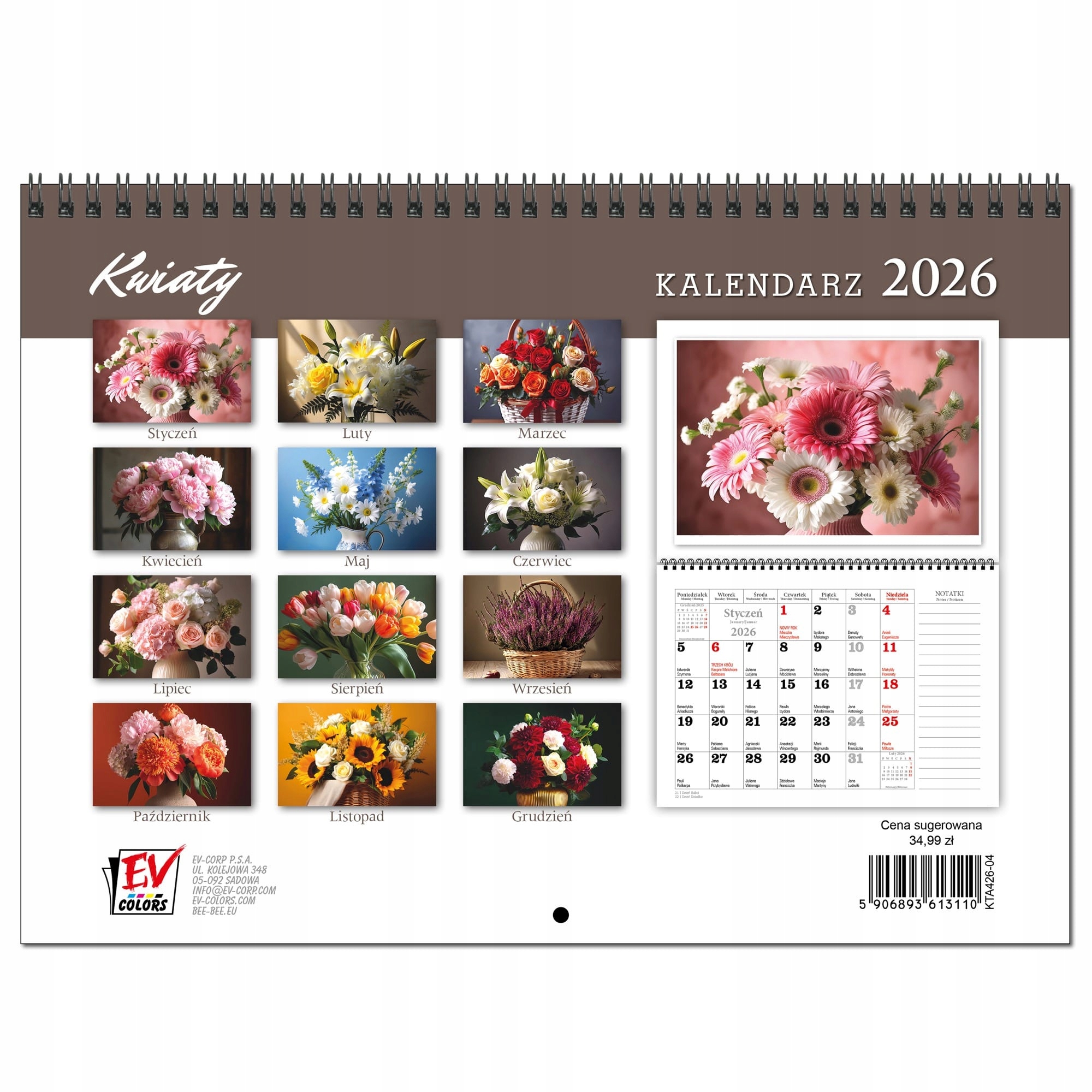 Просматривая «Календарь 2026 настенный планировщик А3 13 досок ЦВЕТЫ», вы можете быть уверены, что данный товар из каталога «Настенные календари» будет доставлен из Польши и проверен на целостность. В цене товара, указанной на сайте, учтена доставка из Польши. Внимание!!! Товары для Евросоюза, согласно законодательству стран Евросоюза, могут отличаться упаковкой или наполнением.