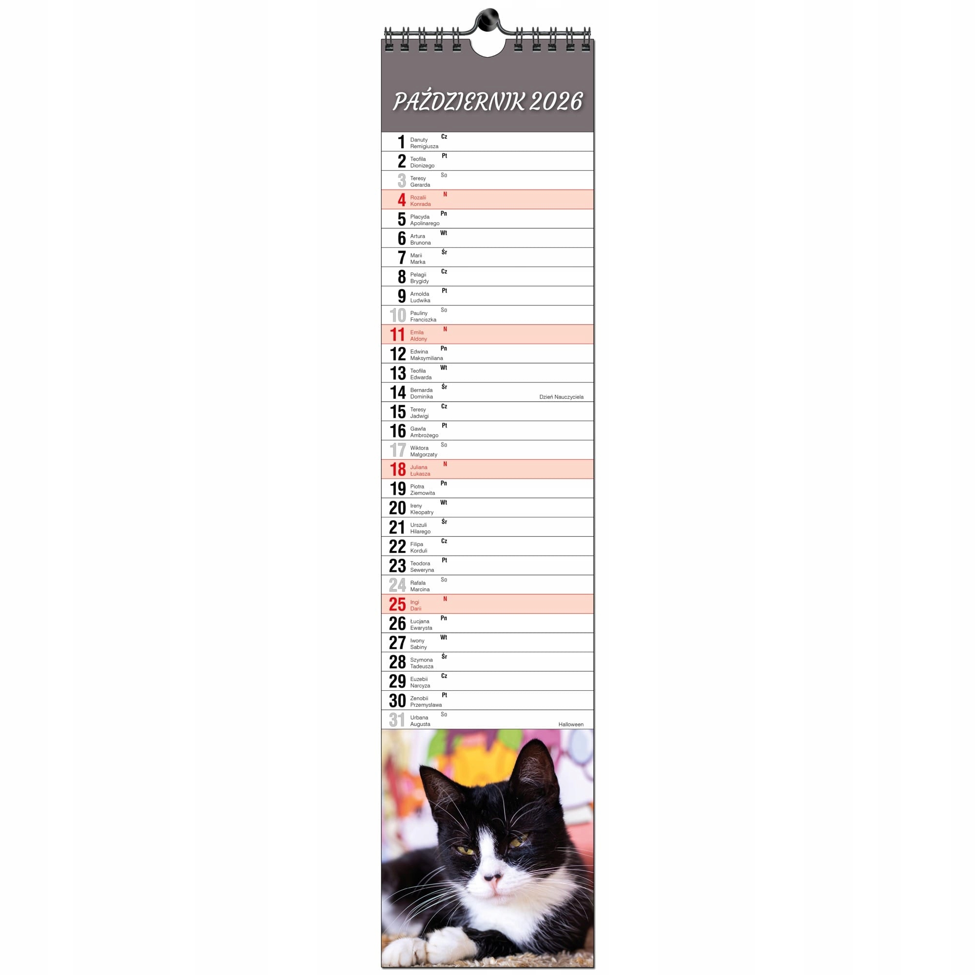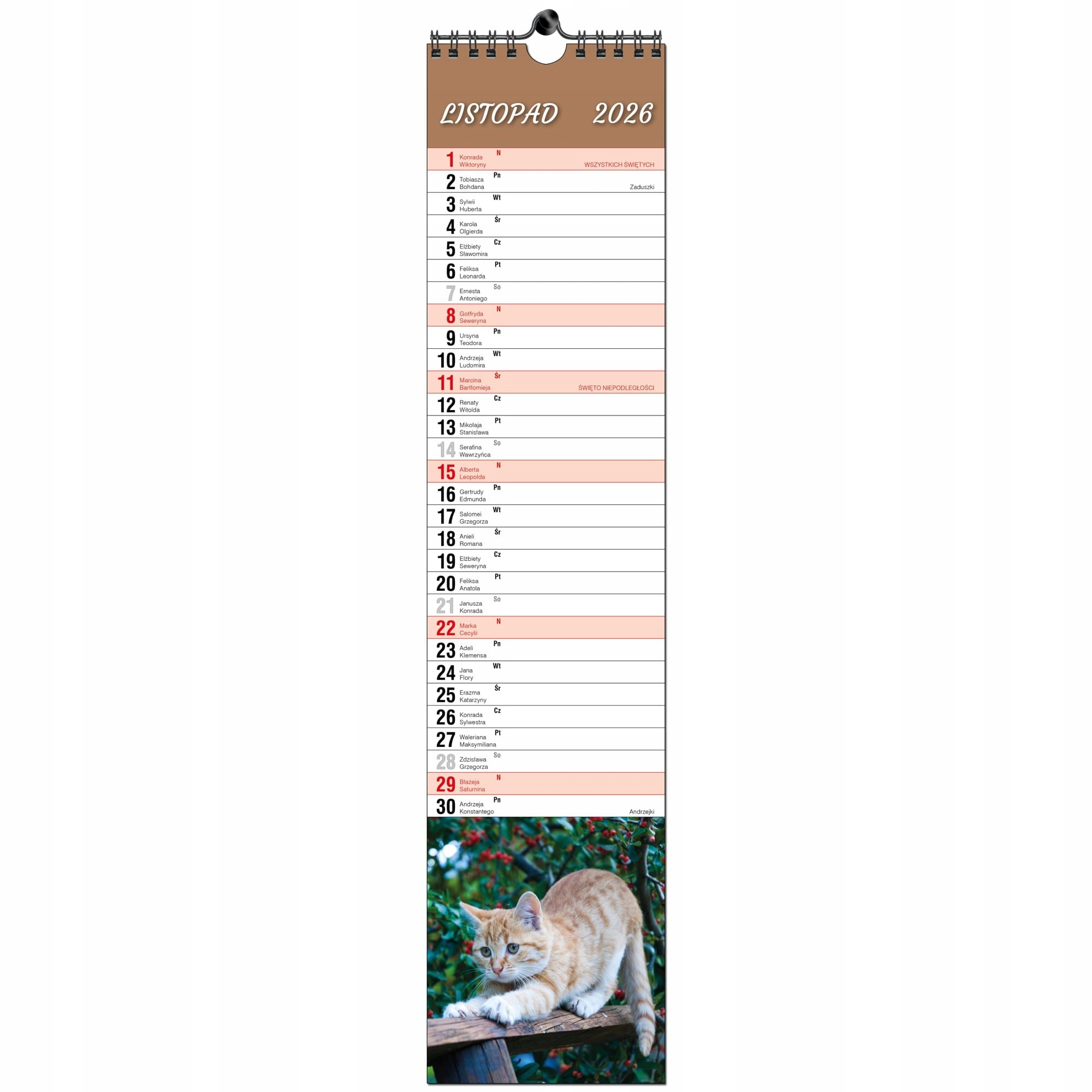 Календар 2026 стрічковий планер для нотаток 11х48 13 дощок КОТИ