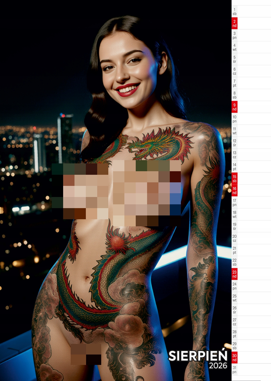 Додайте характеру своєму простору та проведіть весь 2026 рік у компанії красивих дівчат із татуюваннями.