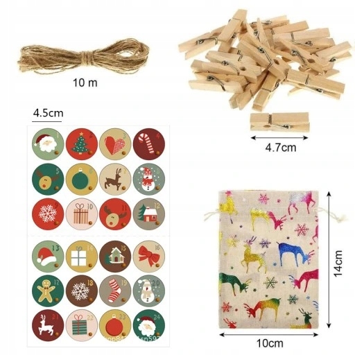 Календар багаторазового використання, шнурок легко знімається, пакети легко та безпечно захищають подарунки, також можна використовувати як пакети для різдвяних подарунків.