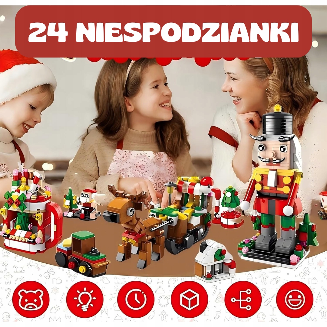 - 24 сюрпризів - Щодня ви відкриєте унікальну модель блоків, прихованих за дверима.