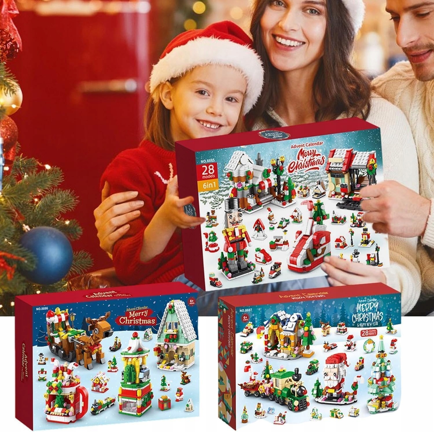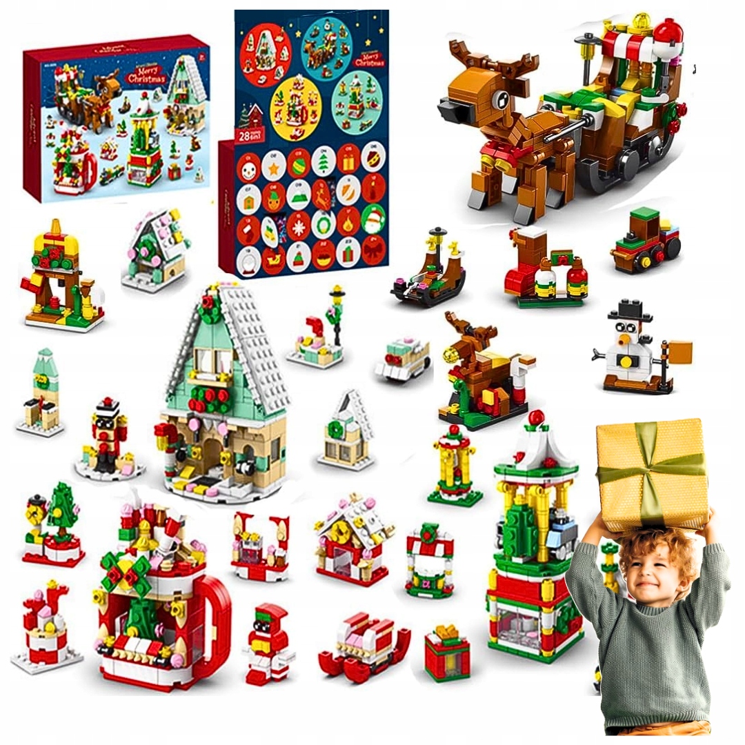 Календар Адвенту 2024, відлік до Різдва 24 дні, будівельні блоки, дитячі іграшки, різдвяні подарунки, прикраса