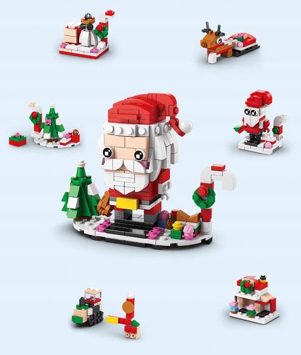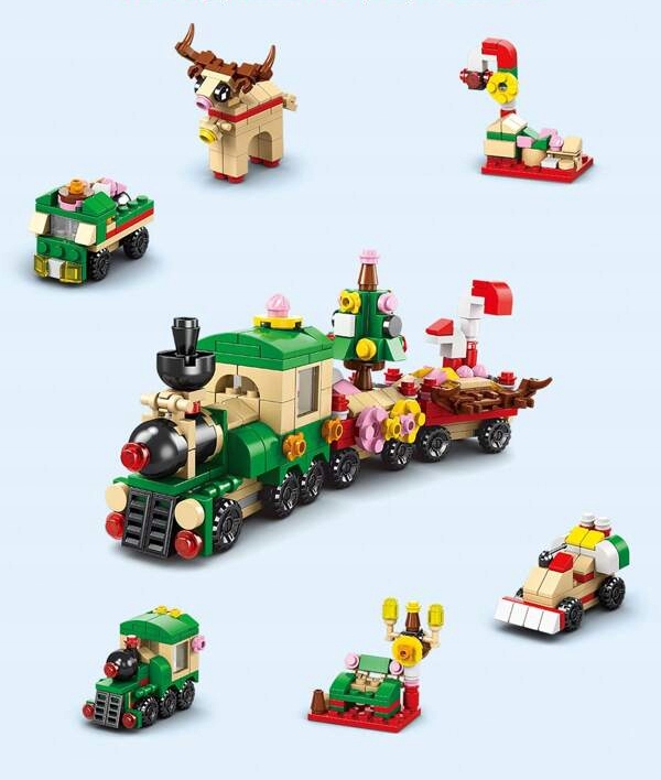 CM- 28 невеликих моделей , з яких дитина може зібрати 4 великих наборів : різдвяний потяг, Санта, ялинка з подарунками та Санта -Клаус. ABS З увагою до кожної деталі.