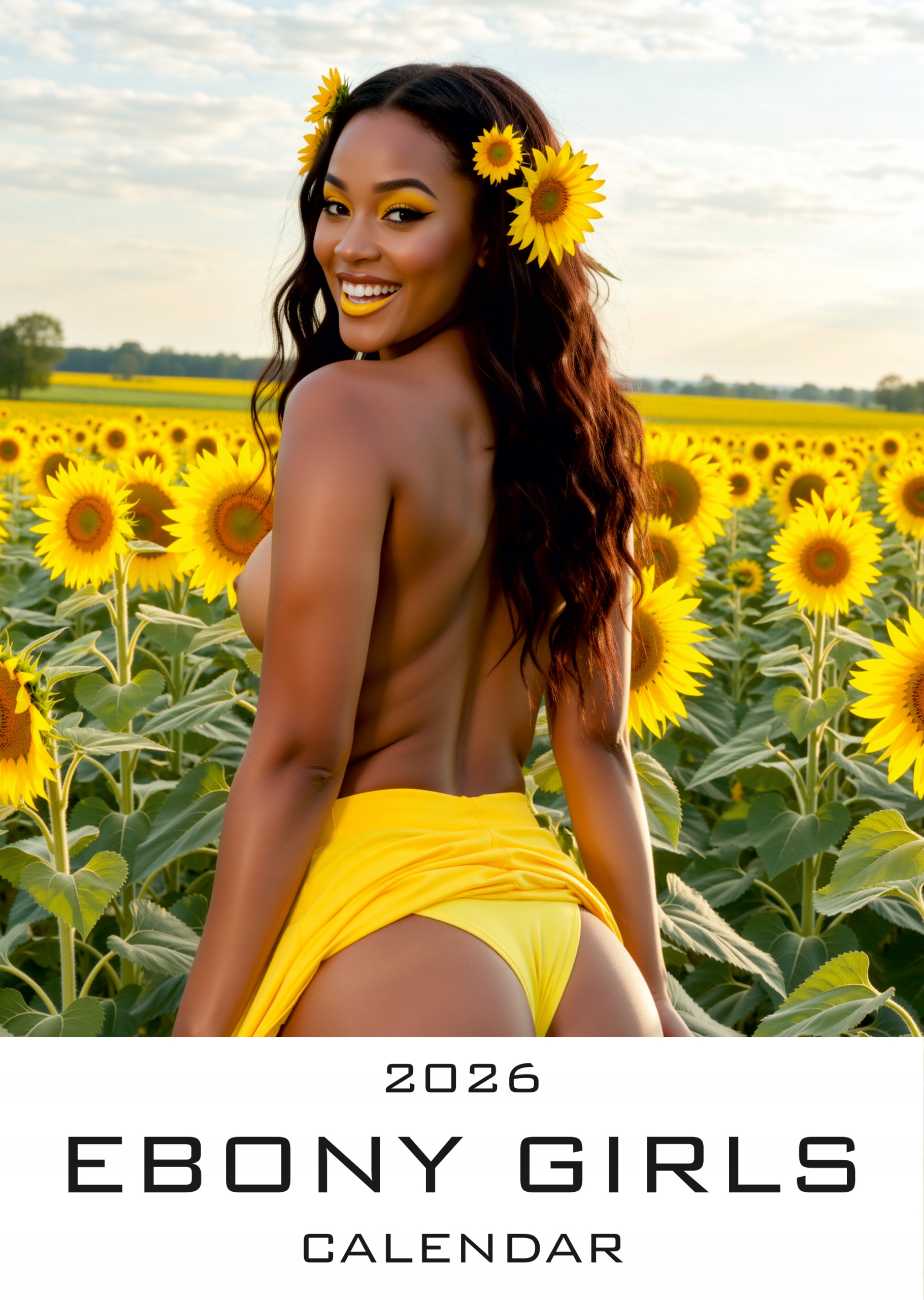Ексклюзивний настінний календар формату A3 на 2026 рік із чудовими темношкірими моделями в чуттєвих топлес та оголених знімках. Гаряча атмосфера, елегантний гламурний стиль і преміальна фотографія.