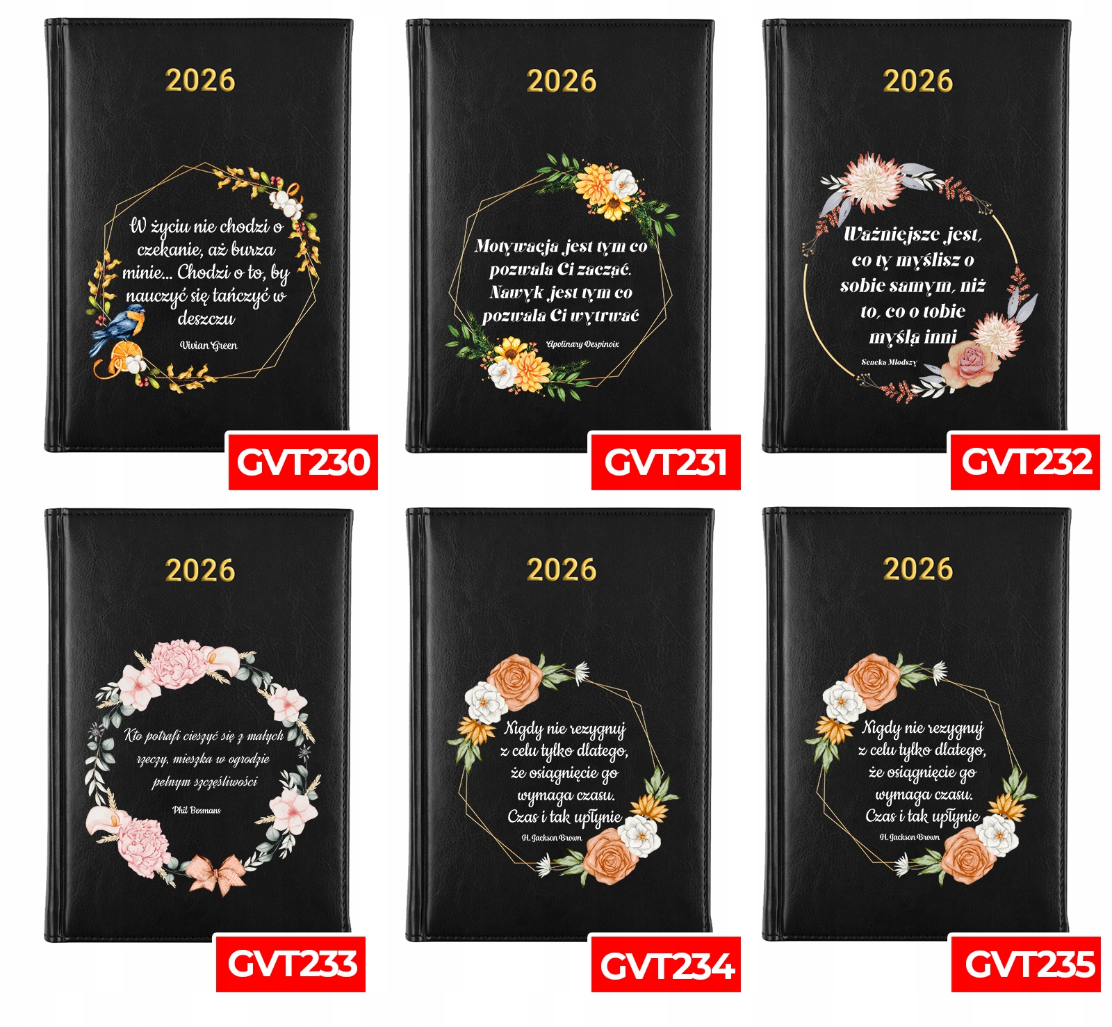 📘 Елегантна чорна обкладинка в поєднанні з різноманітними візерунками - від надихаючих цитат до ілюстрацій - робить календар не лише інструментом планування, але й модним аксесуаром.