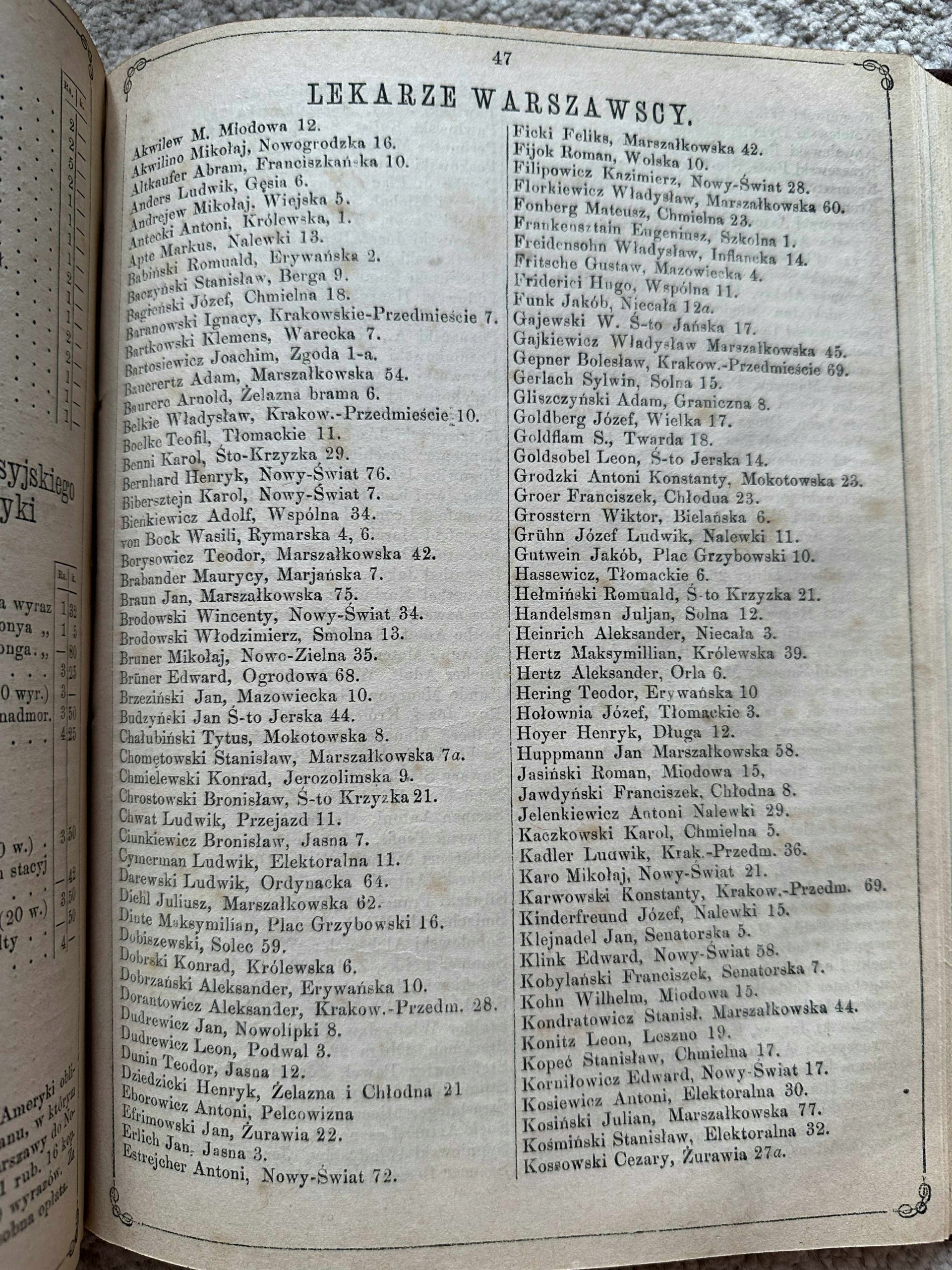 - Варшавський адресатор (влада, лікарні, рослини, школи, театри, лікарі, адвокати тощо).